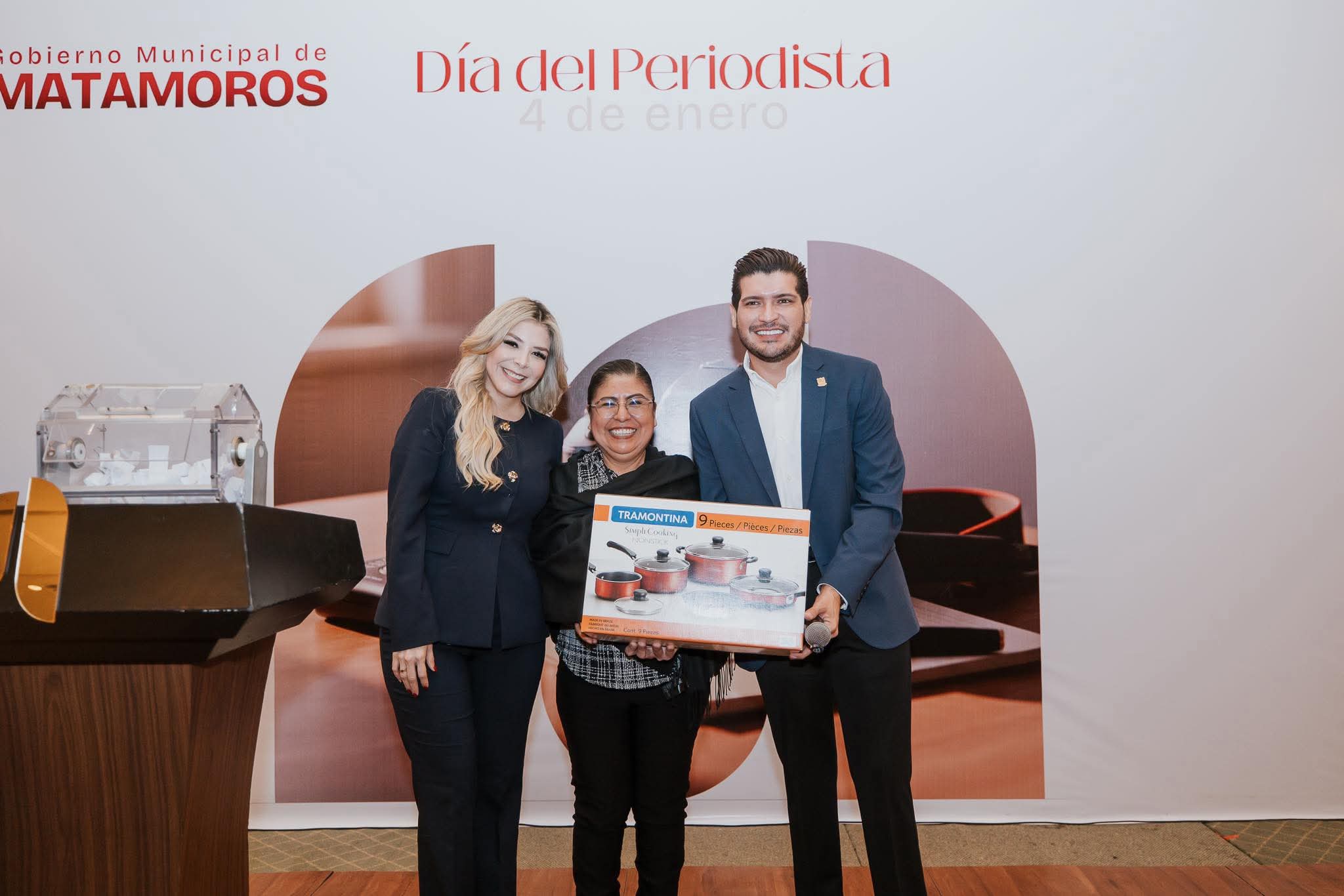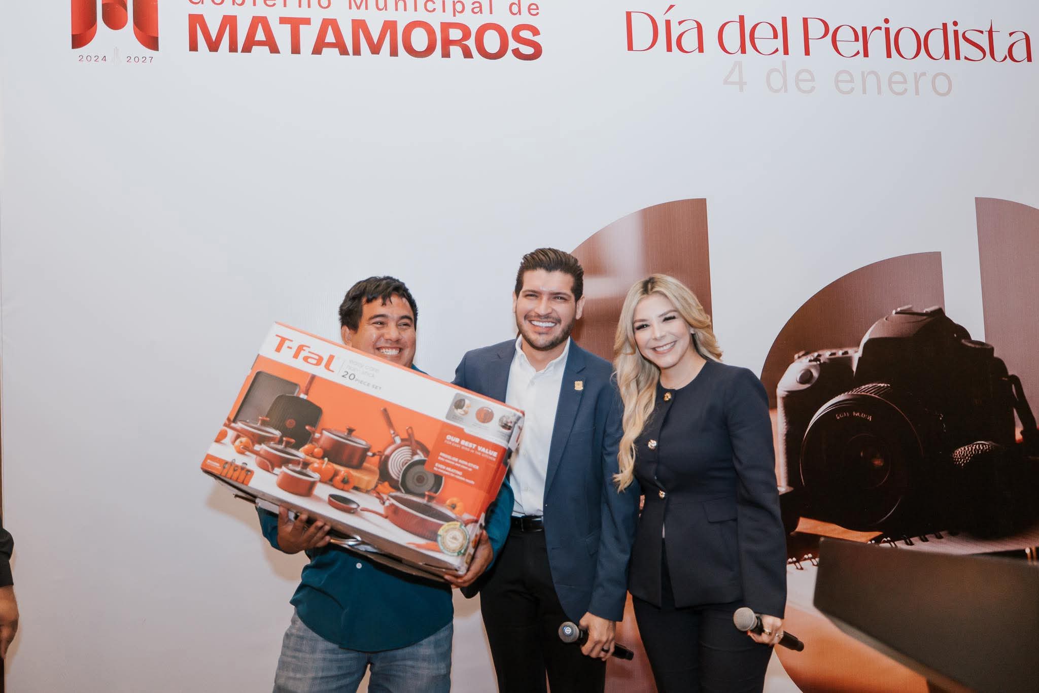 En este importante encuentro, el alcalde estuvo acompañado por la presidenta del Sistema DIF Matamoros, Ana Ariceaga de Granados, quien también reconoció la vocación y el esfuerzo de las y los comunicadores, reafirmando el compromiso de trabajar de manera cercana con el gremio periodístico en beneficio de la sociedad matamorense.