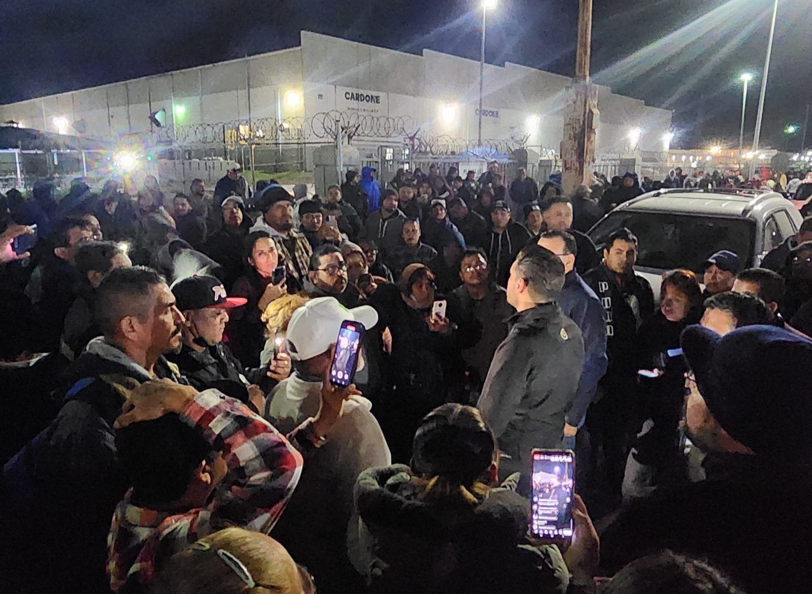 Matamoros, Tam.- El alcalde Beto Granados visitó el parque industrial Finsa Oriente donde se ubica la empresa maquiladora CARDONE (TRIDONEX) para dialogar y brindar apoyo a los trabajadores que se encuentran a las afueras de la empresa debido a la situación laboral que están enfrentando.