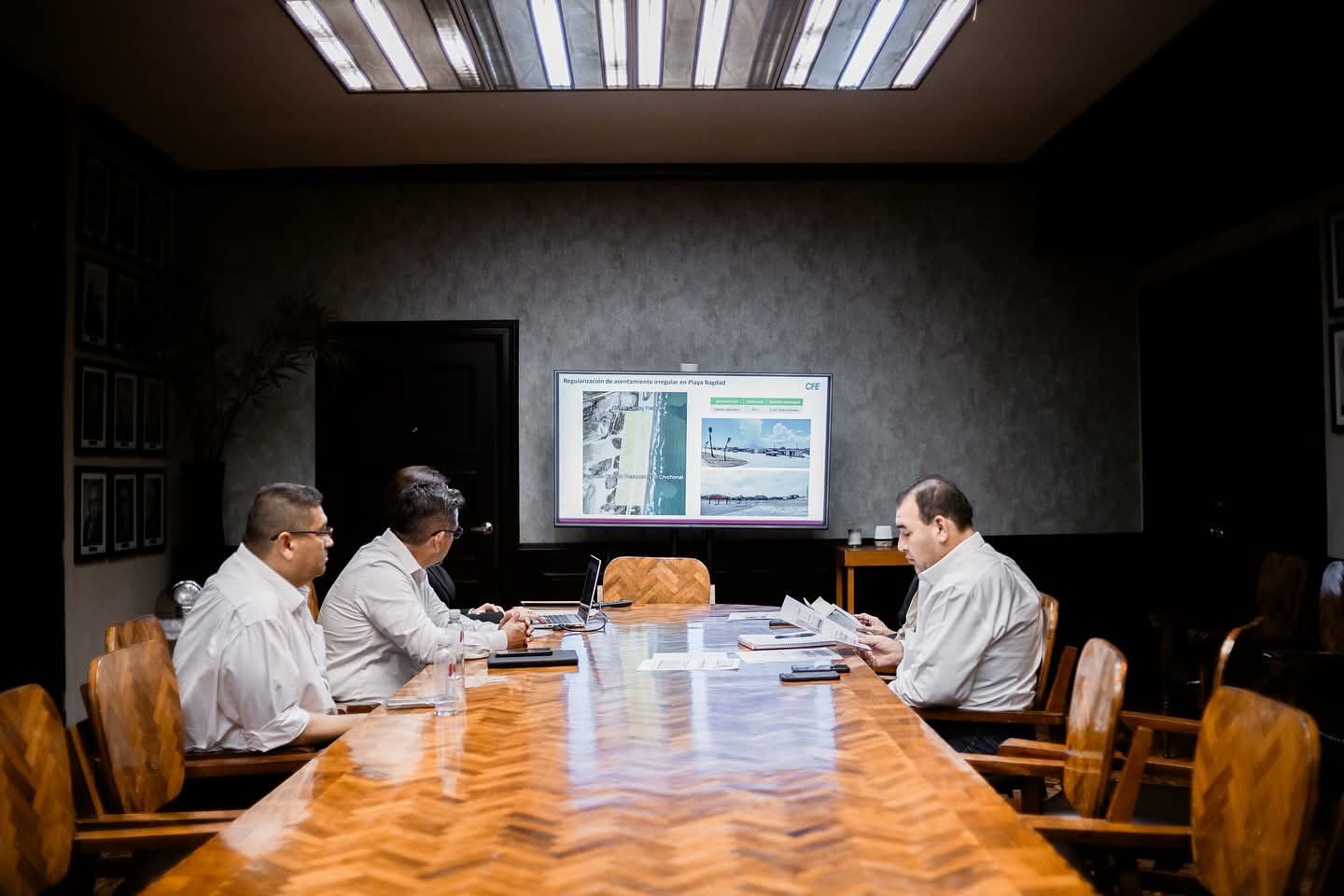 H. Matamoros, Tamaulipas.— El presidente municipal de Matamoros, Beto Granados, sostuvo una importante reunión de trabajo en el Palacio Municipal con el superintendente de la Comisión Federal de Electricidad (CFE), el ingeniero Raymundo Medina, con el objetivo de analizar las necesidades actuales del municipio en materia eléctrica y proyectar las inversiones en infraestructura para la próxima década.