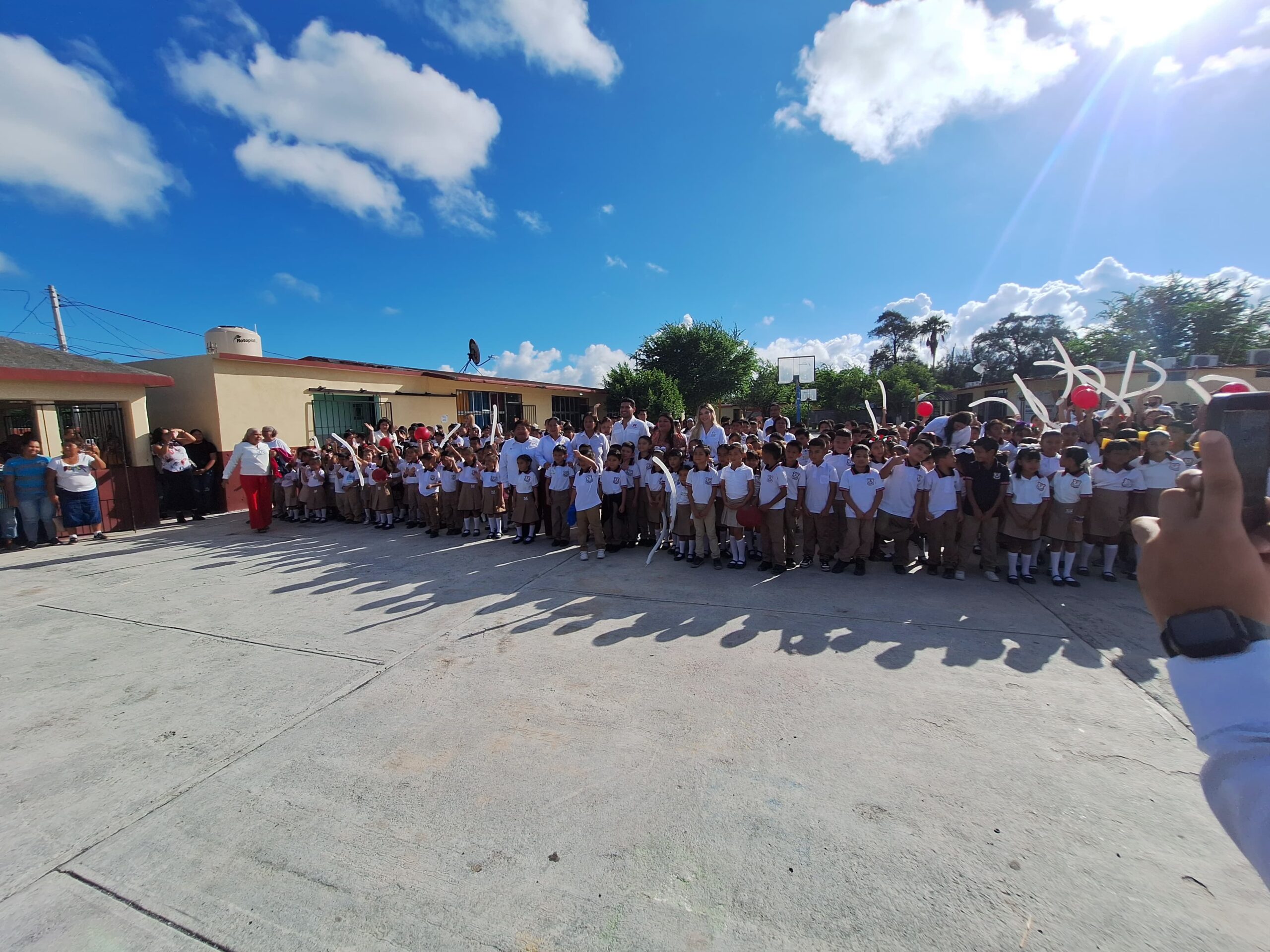 Recordó que la petición de la comunidad escolar había sido ignorada en administraciones pasadas y que su compromiso es recorrer personalmente las escuelas para supervisar y mejorar los planteles. Además, adelantó que el próximo año se instalará una techumbre para proteger a los alumnos del sol y la lluvia.
