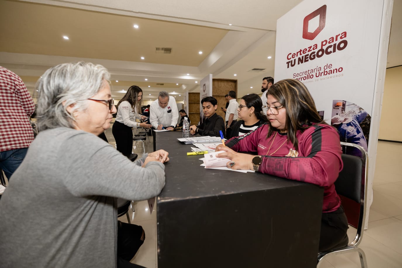 Con la participación de todas las dependencias involucradas en el servicio al comercio, los asistentes pudieron realizar trámites relacionados con licencia de uso de suelo, licencia de funcionamiento, dictamen de Protección Civil y permisos como generador de residuos sólidos, que forman parte de los ordenamientos que todos los establecimientos en Matamoros deben cumplir.
