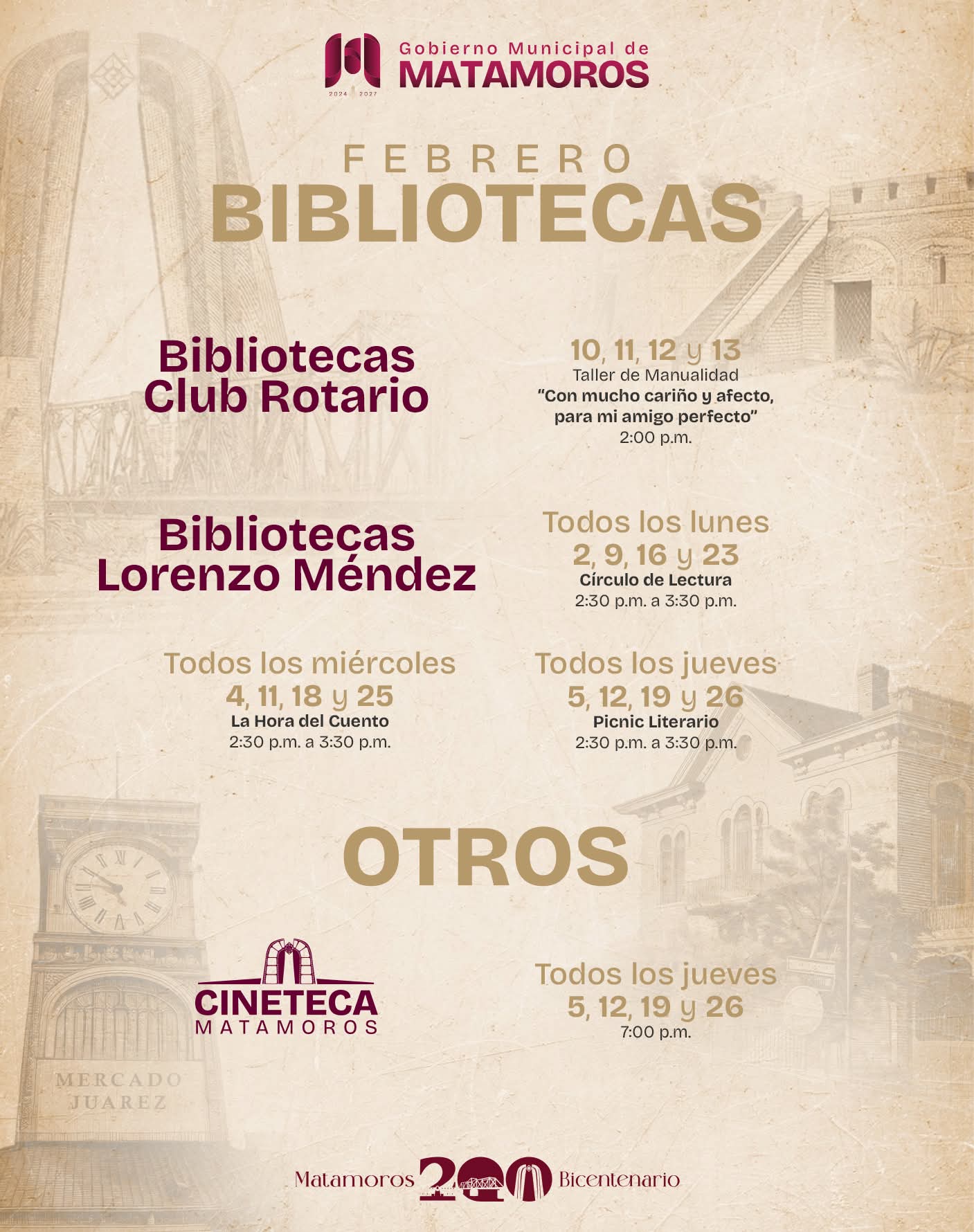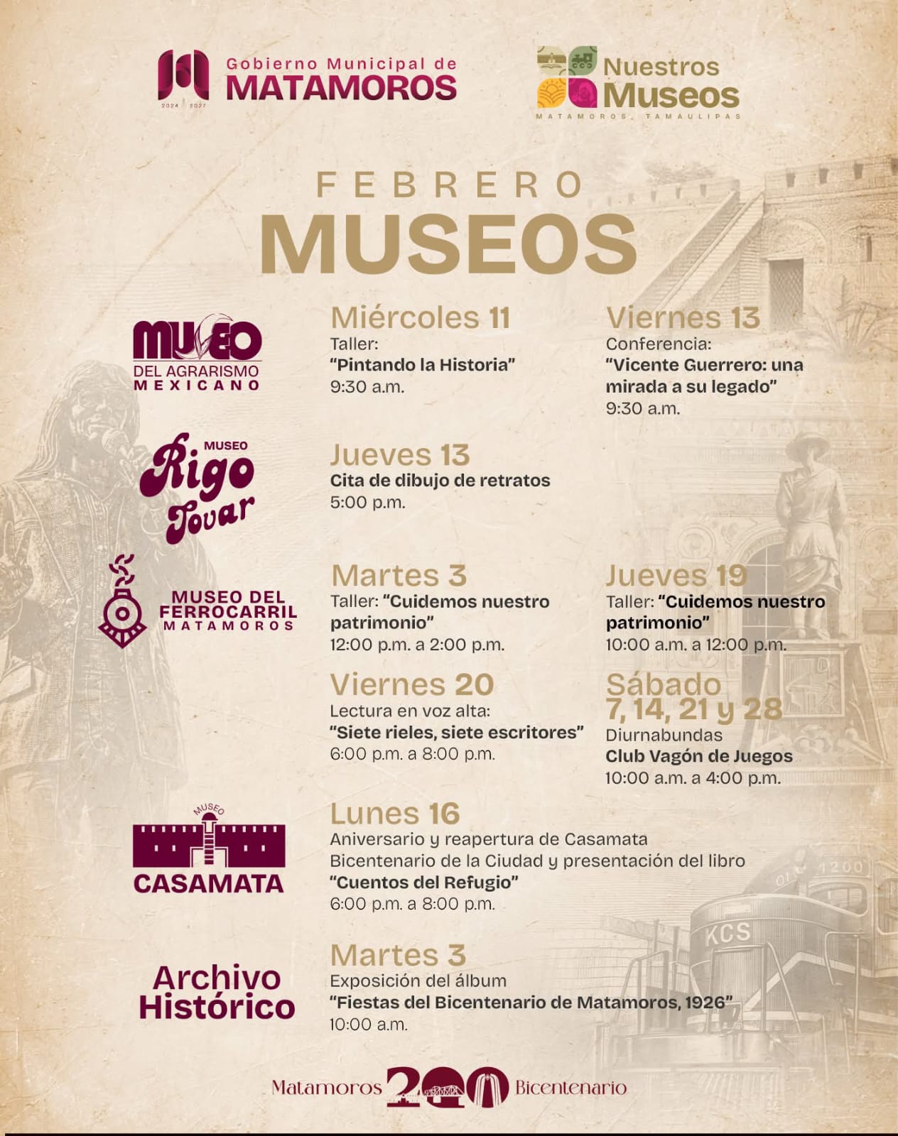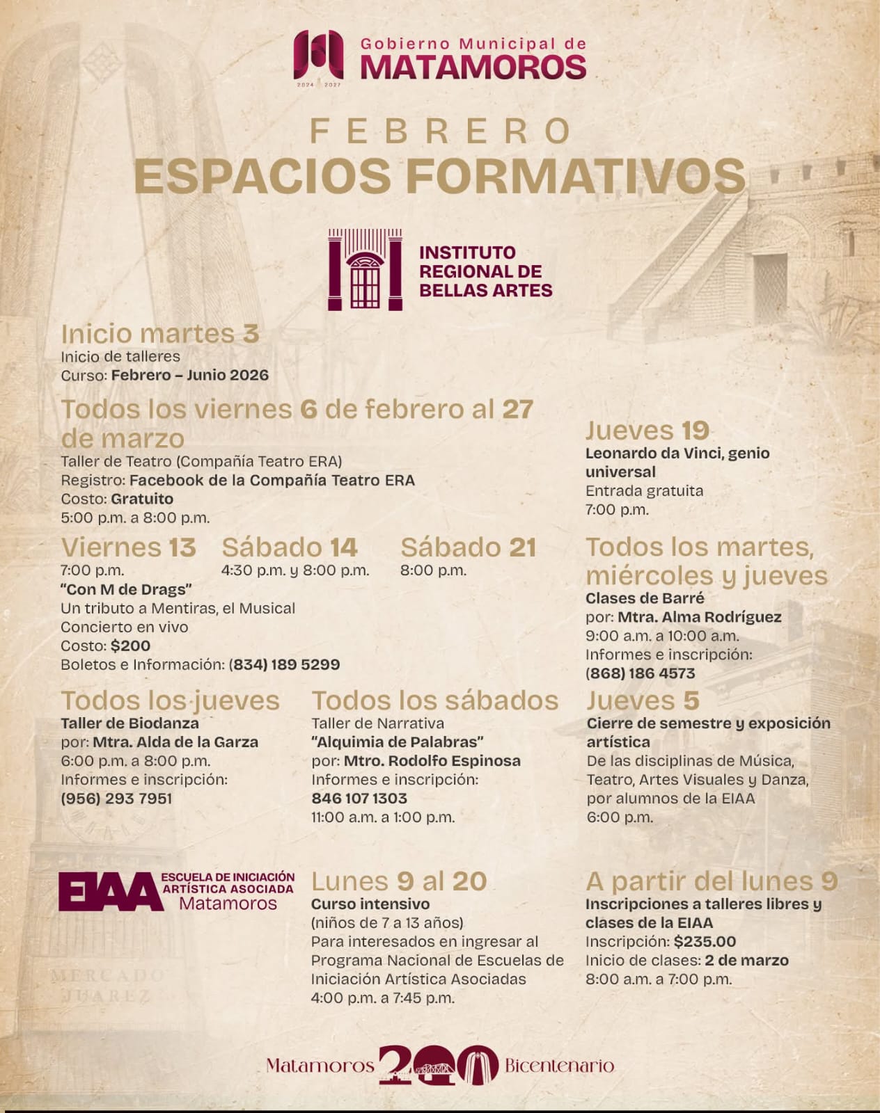 Teatro, música, danza, narrativa y patrimonio histórico se unen en una agenda pensada para aprender, crear y disfrutar en comunidad. Cada actividad representa una oportunidad para fortalecer nuestra identidad y fomentar la participación cultural de las familias matamorenses.