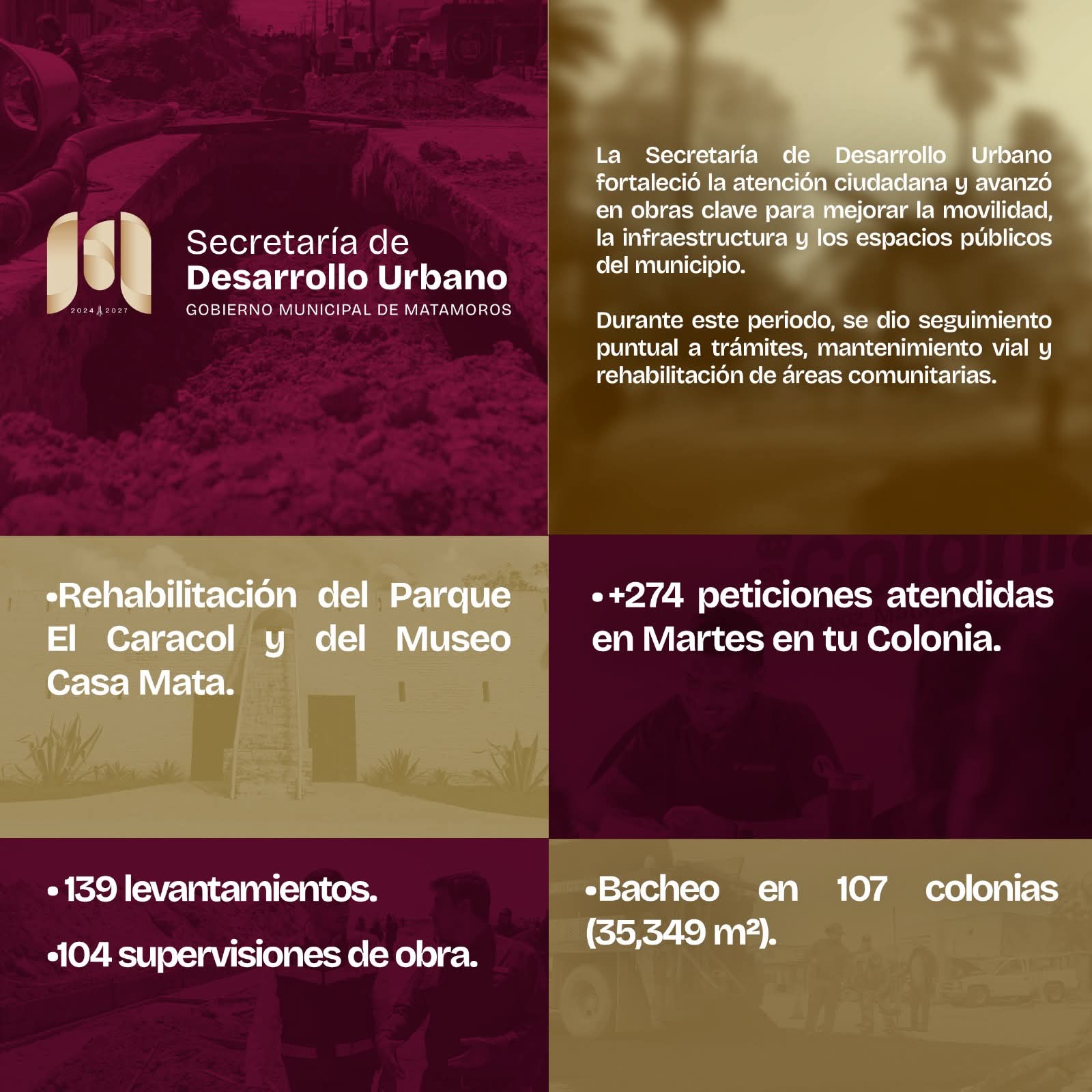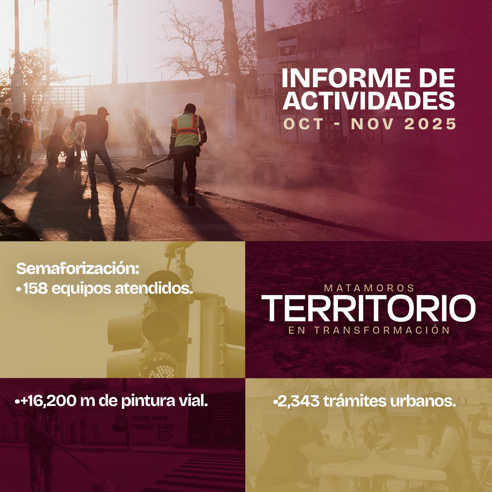 Estas acciones reflejan un trabajo constante y coordinado para brindar mejores servicios, consolidar una ciudad más ordenada, segura y funcional, y avanzar con paso firme hacia un mejor futuro, para que brille Matamoros.