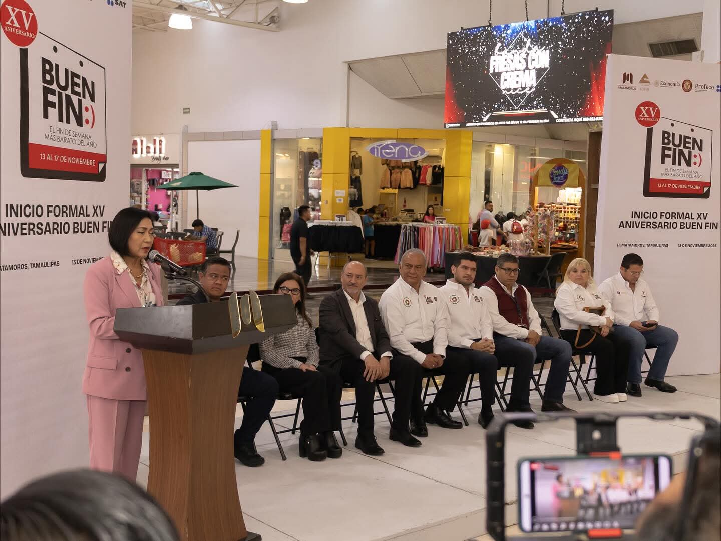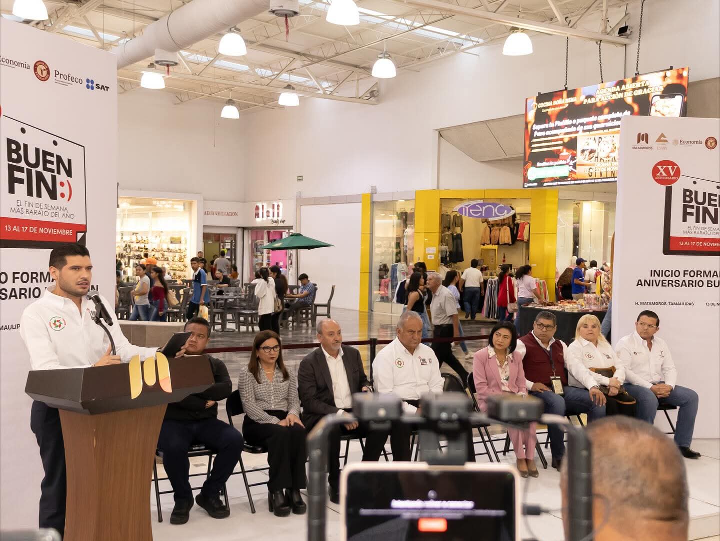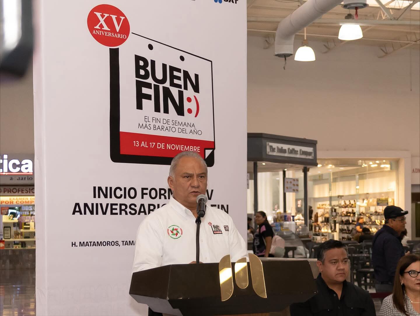 H. Matamoros, Tamaulipas.- En coordinación con el Comercio Organizado de Matamoros, el presidente municipal Beto Granados puso en marcha la 15ª edición del Buen Fin, durante un evento realizado en el centro comercial Plaza Fiesta.