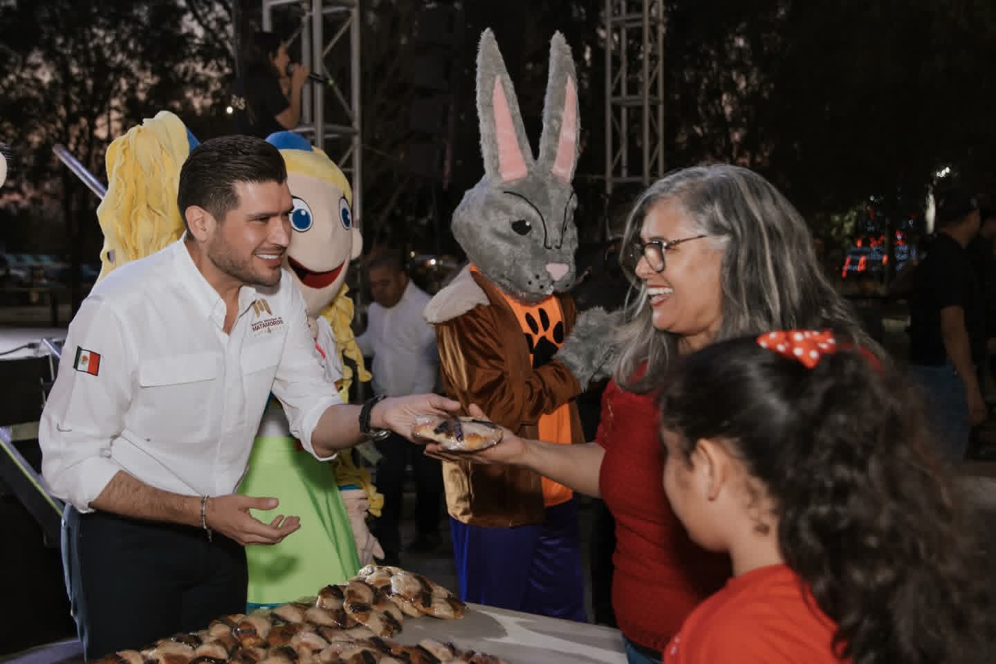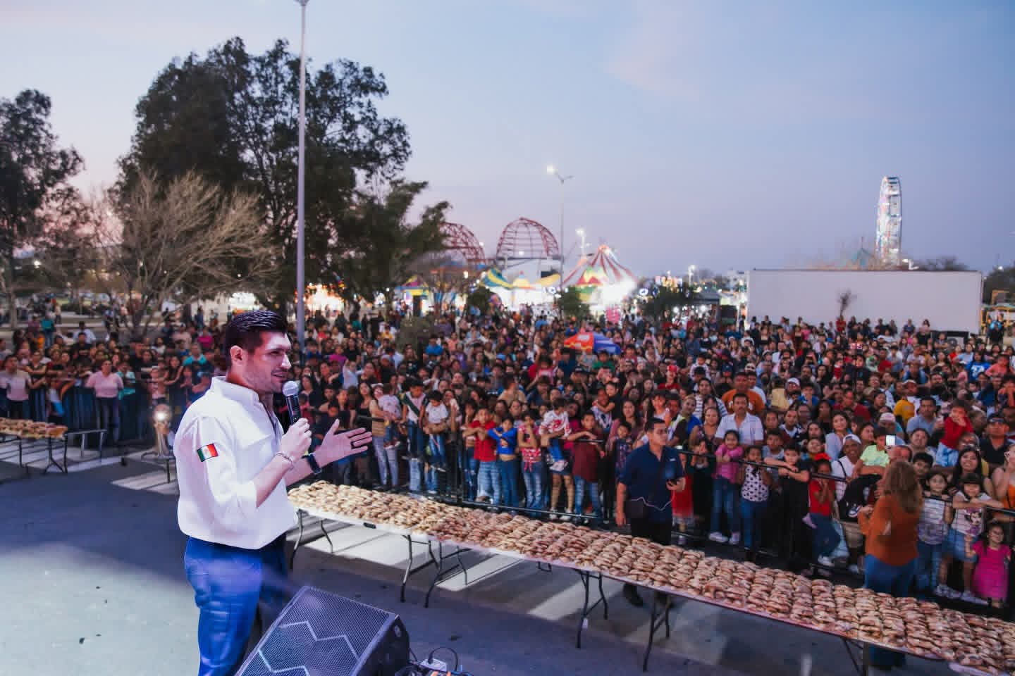 H. Matamoros, Tamaulipas.- Más de mil personas se dieron cita en el evento de entrega de roscas de reyes, encabezado por el alcalde de Matamoros, Beto Granados, y la presidenta del Sistema DIF, Anita de Granados, donde las familias disfrutaron de más de dos horas de juegos mecánicos gratuitos, gracias a la coordinación con Atracciones Calderón, generando un ambiente de alegría y sana convivencia.