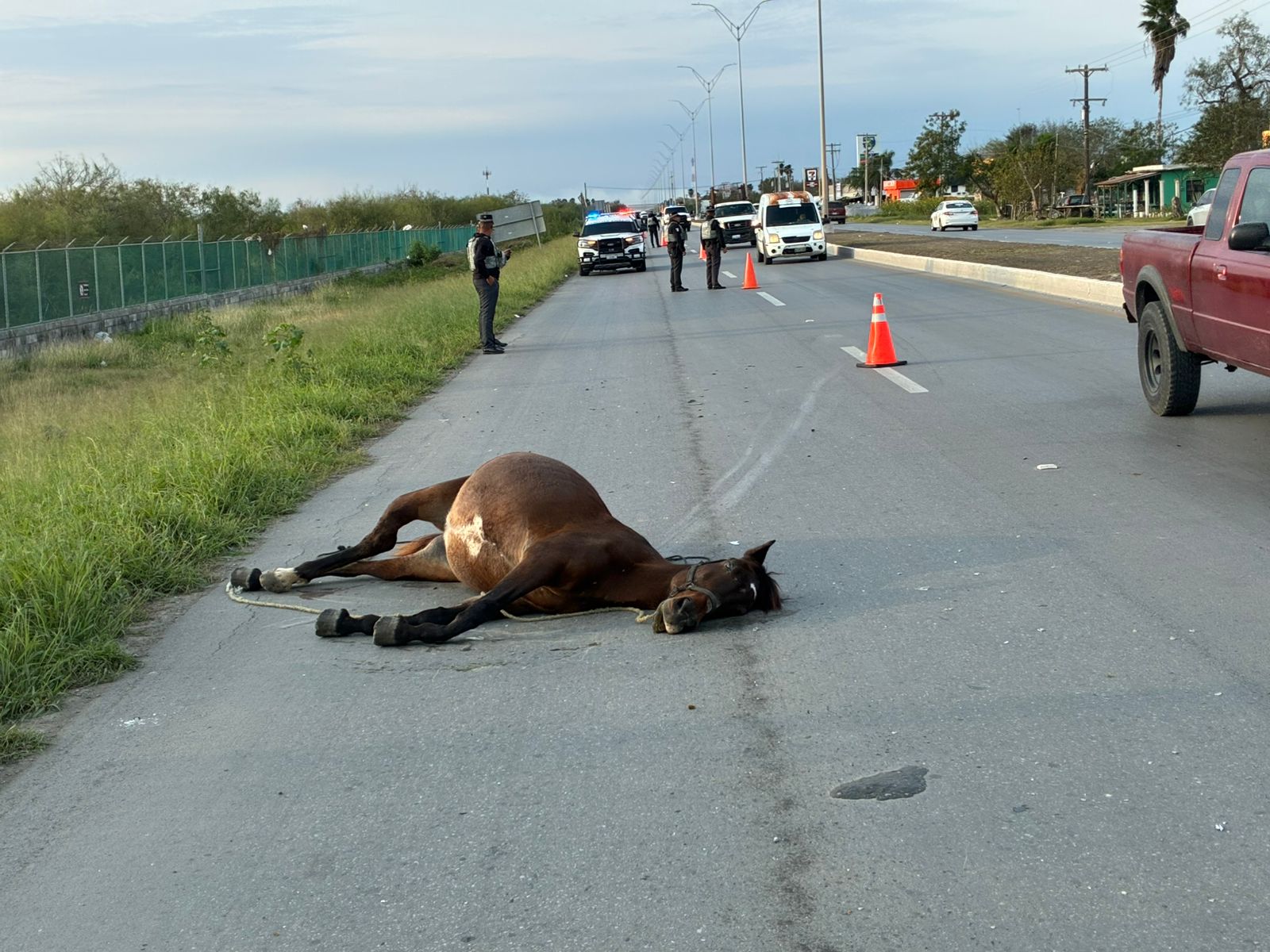 Un automóvil se impactó contra un caballo que se encontraba suelto sobre la carretera Matamoros–Victoria, a la altura del aeropuerto, provocando un accidente la mañana de este día y poniendo en riesgo a otros conductores.