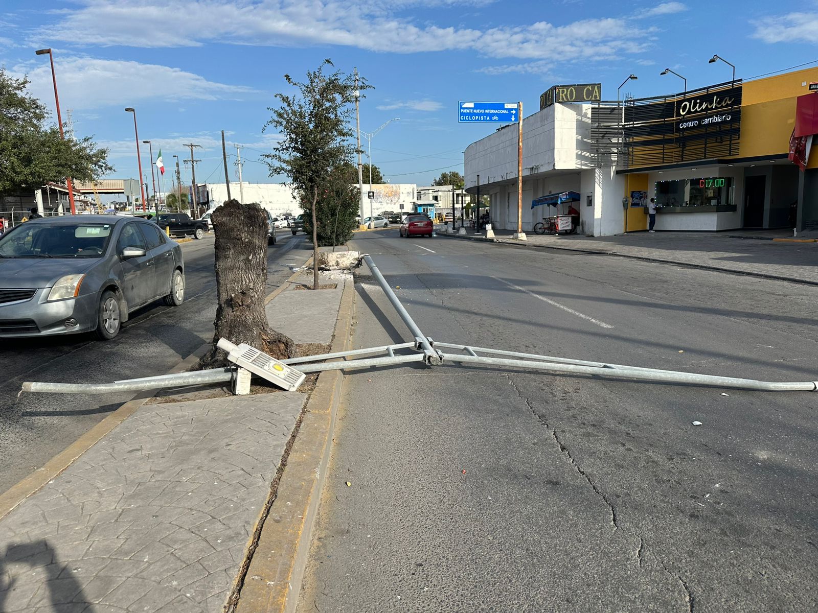El percance involucró a una unidad de la ruta 1, sección 16, la cual circulaba por la avenida Álvaro Obregón cuando, al llegar al cruce con la avenida de las Rosas, el operador perdió el control del volante en una curva del sector. La unidad terminó trepando el camellón central e impactándose de lleno contra el poste, el cual fue arrancado de raíz y quedó atravesado sobre la carpeta asfáltica.