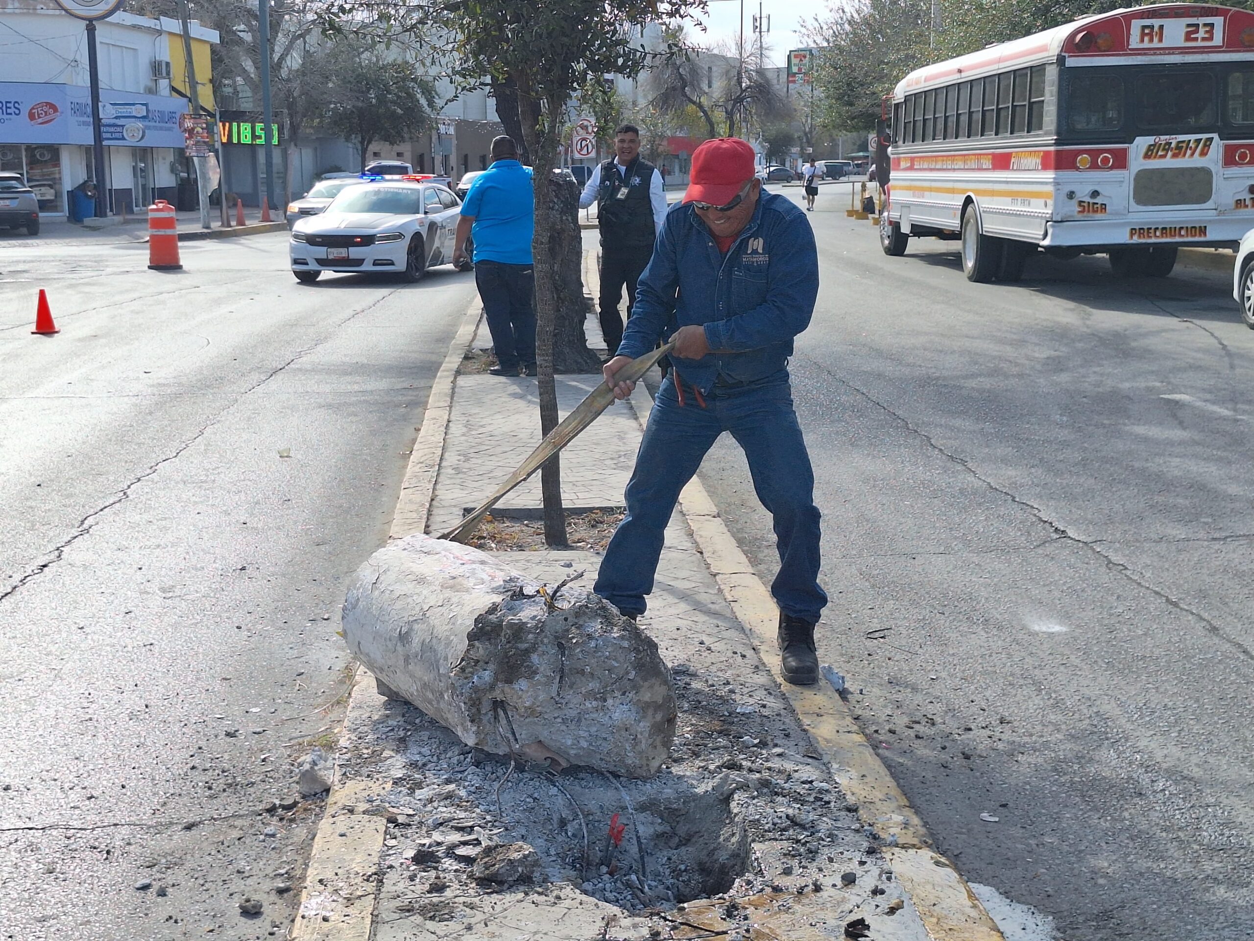 Peritos de Tránsito y Vialidad se hicieron presentes para tomar conocimiento de los hechos y realizar el peritaje correspondiente, mientras que personal de Alumbrado Público llevó a cabo las labores para retirar el poste dañado y liberar la vialidad.