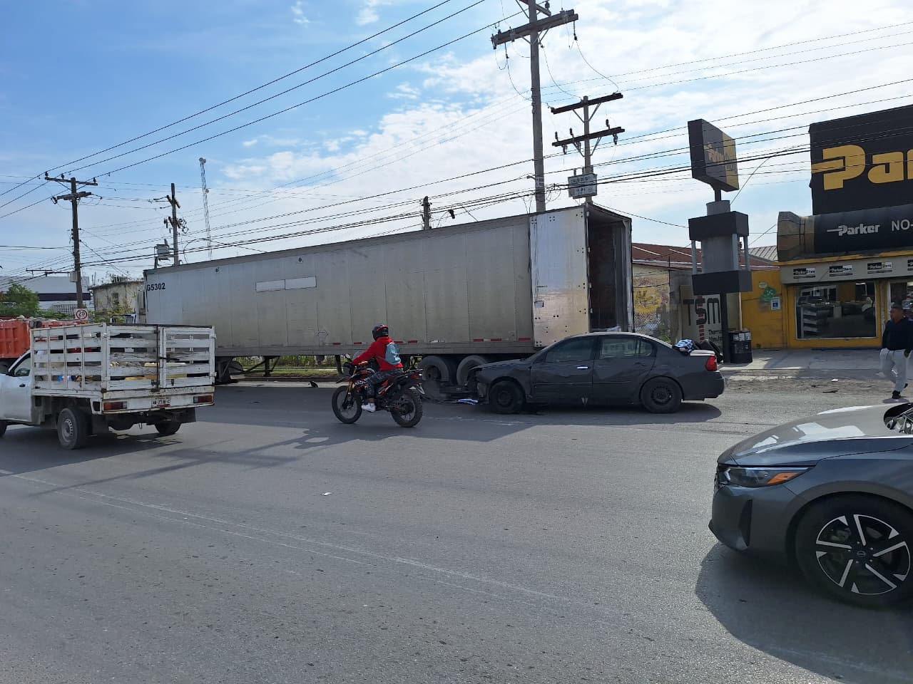 De acuerdo con los primeros reportes, las dos unidades pesadas circulaban por la zona cuando, por causas que aún se investigan, encerraron al vehículo compacto.
