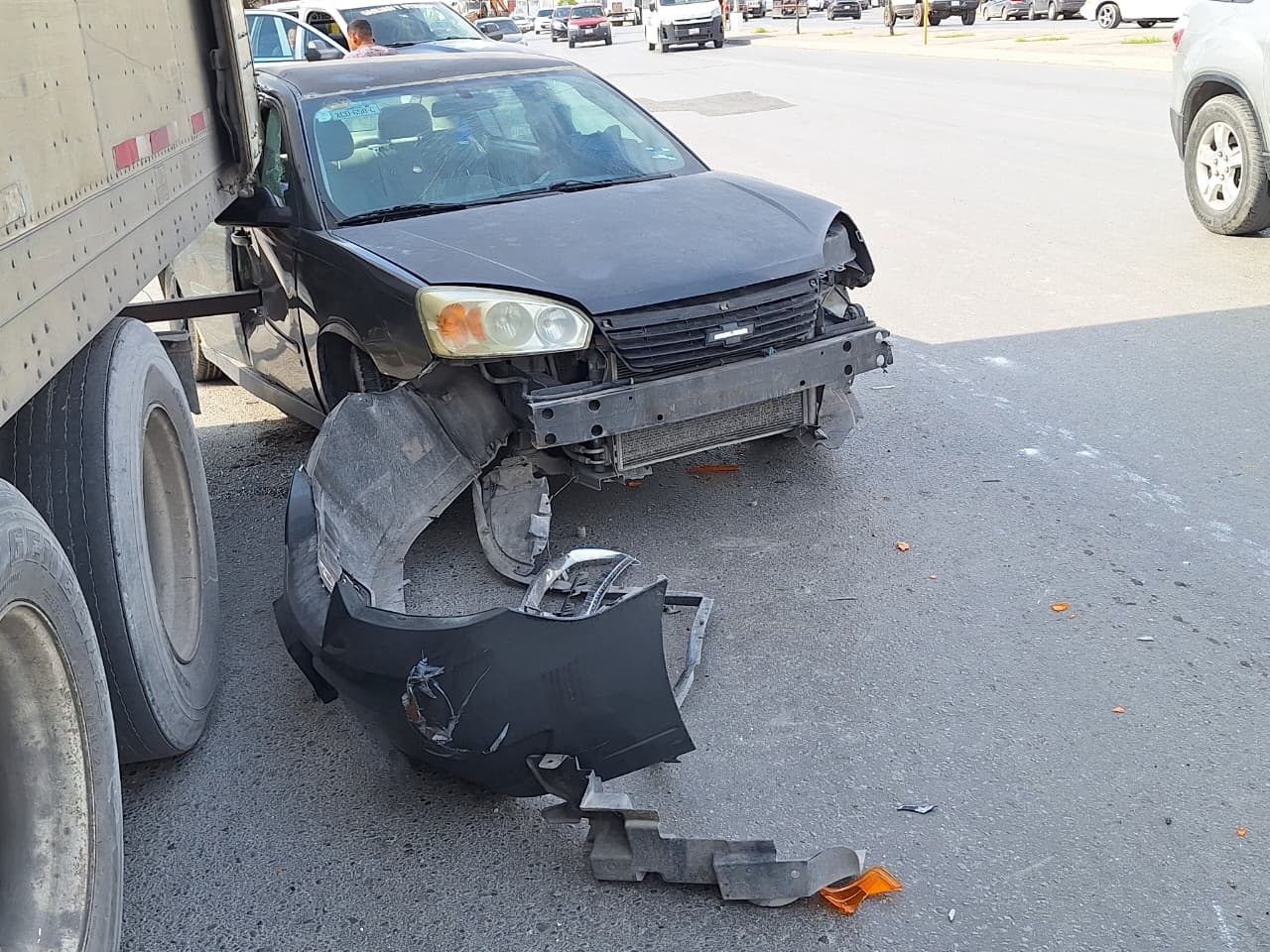 Pese a la violencia del impacto, el conductor del Malibu salió ileso, aunque su automóvil quedó con daños severos.