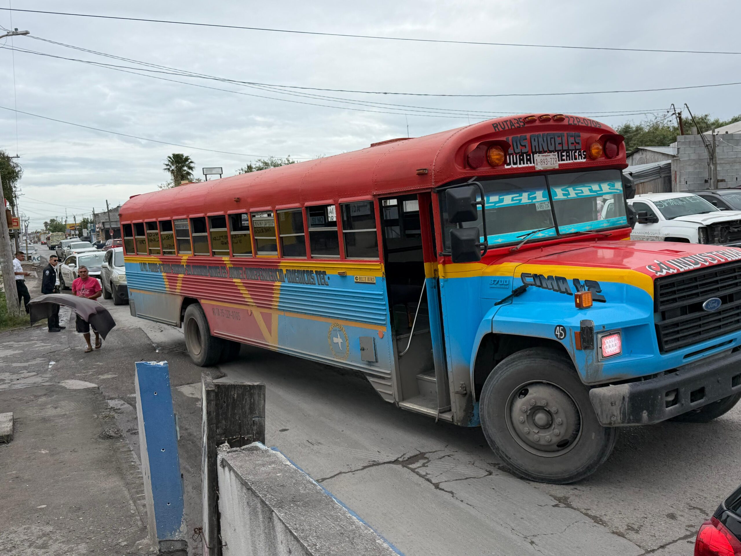 Matamoros, Tamaulipas.– La mañana de este jueves se registró un choque por alcance que involucró a cuatro vehículos, entre ellos un camión de transporte público.