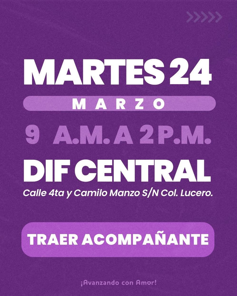 •⁠ ⁠Lugar: Instalaciones de DIF Central (Calle 4 y Camilo Manzo S/N, Col. Lucero).