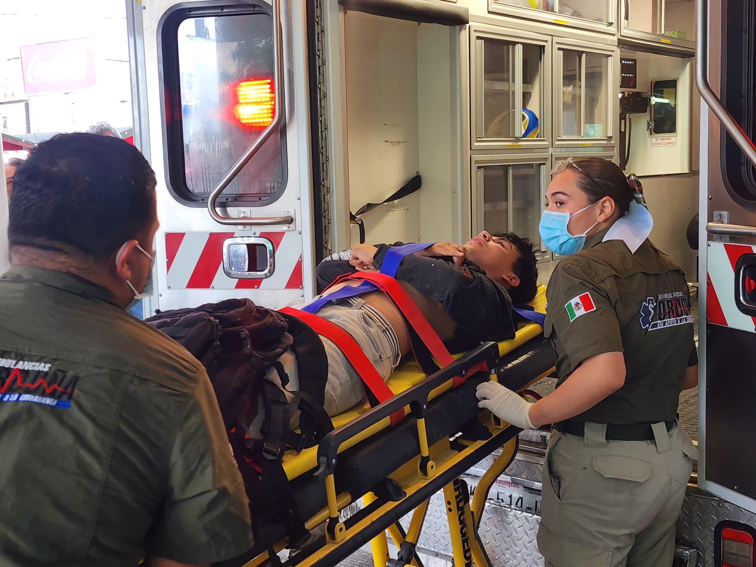 Paramédicos del grupo Orduña acudieron rápidamente al lugar y le brindaron los primeros auxilios. Posteriormente, fue trasladado de emergencia al IMSS de Sexta y Mina para su evaluación y atención médica especializada.