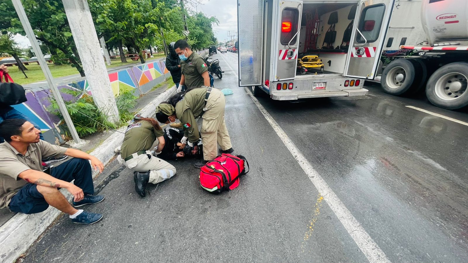 Un motociclista sufrió una caída en el periférico, resultando con posibles fracturas.