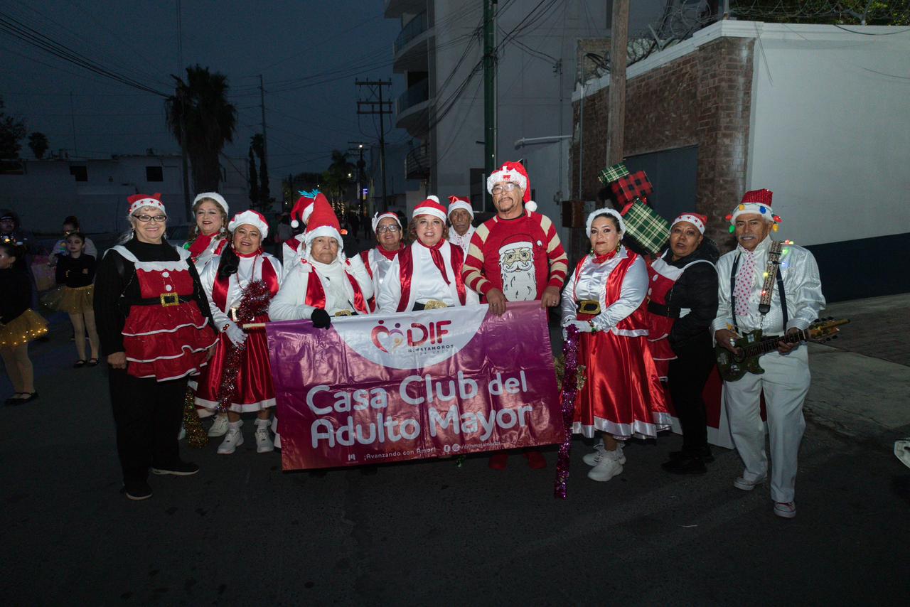 Durante el recorrido, participaron adultos mayores de la Casa Club del Adulto Activo, así como niñas y niños del programa “Niños en Movimiento”, quienes destacaron con una presentación alusiva a la temporada navideña.