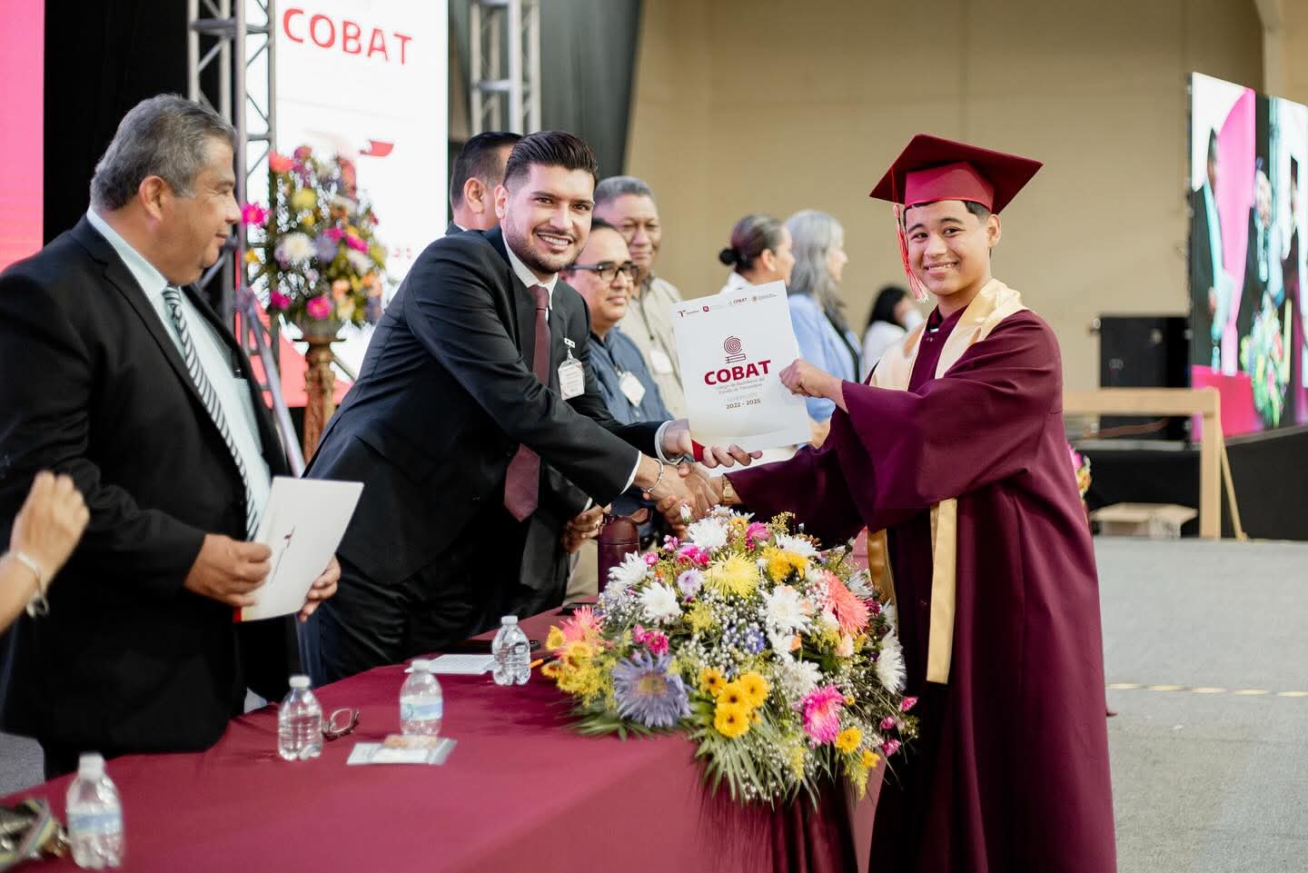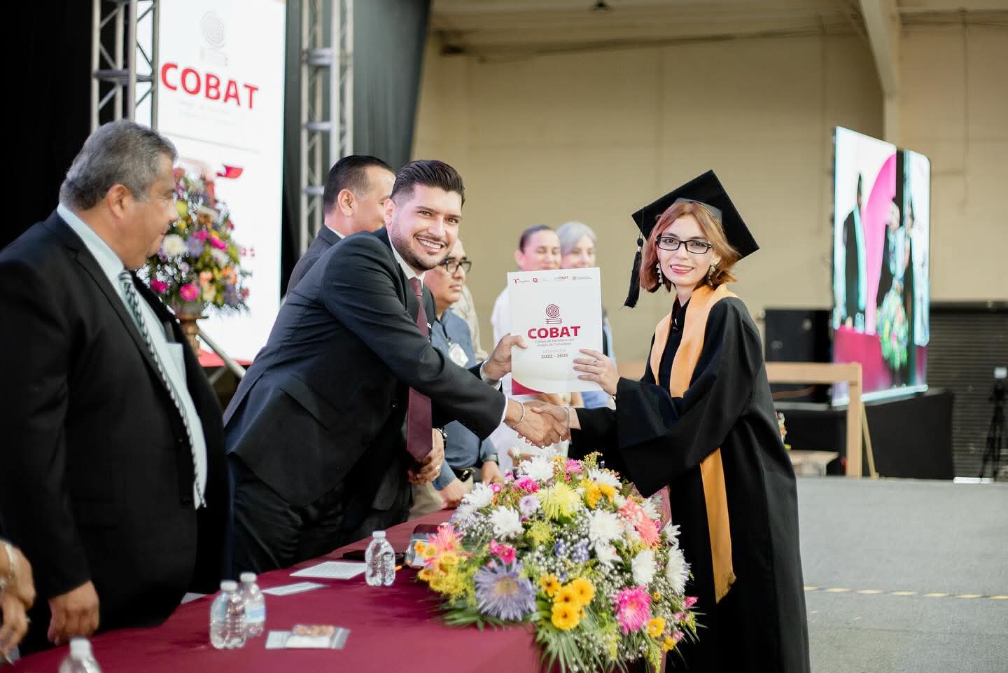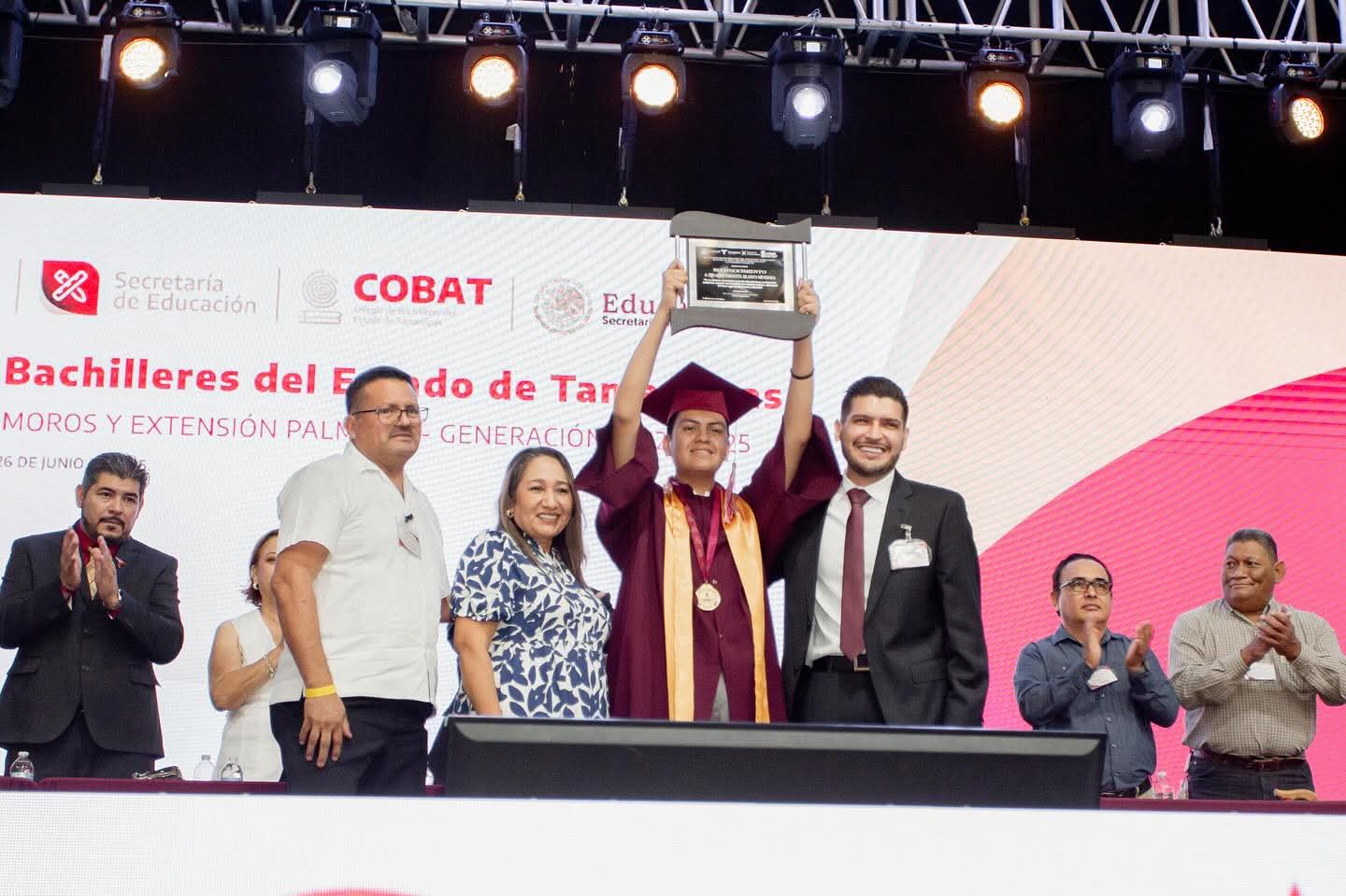 H. Matamoros, Tamaulipas.- El presidente municipal, Beto Granados, tuvo el honor de apadrinar a la generación egresada del Colegio de Bachilleres de Tamaulipas (COBAT) Plantel 02. Durante la emotiva ceremonia de graduación, expresó su agradecimiento por la invitación y destacó la importancia de acompañar a esta gran generación en un momento tan significativo para sus vidas.