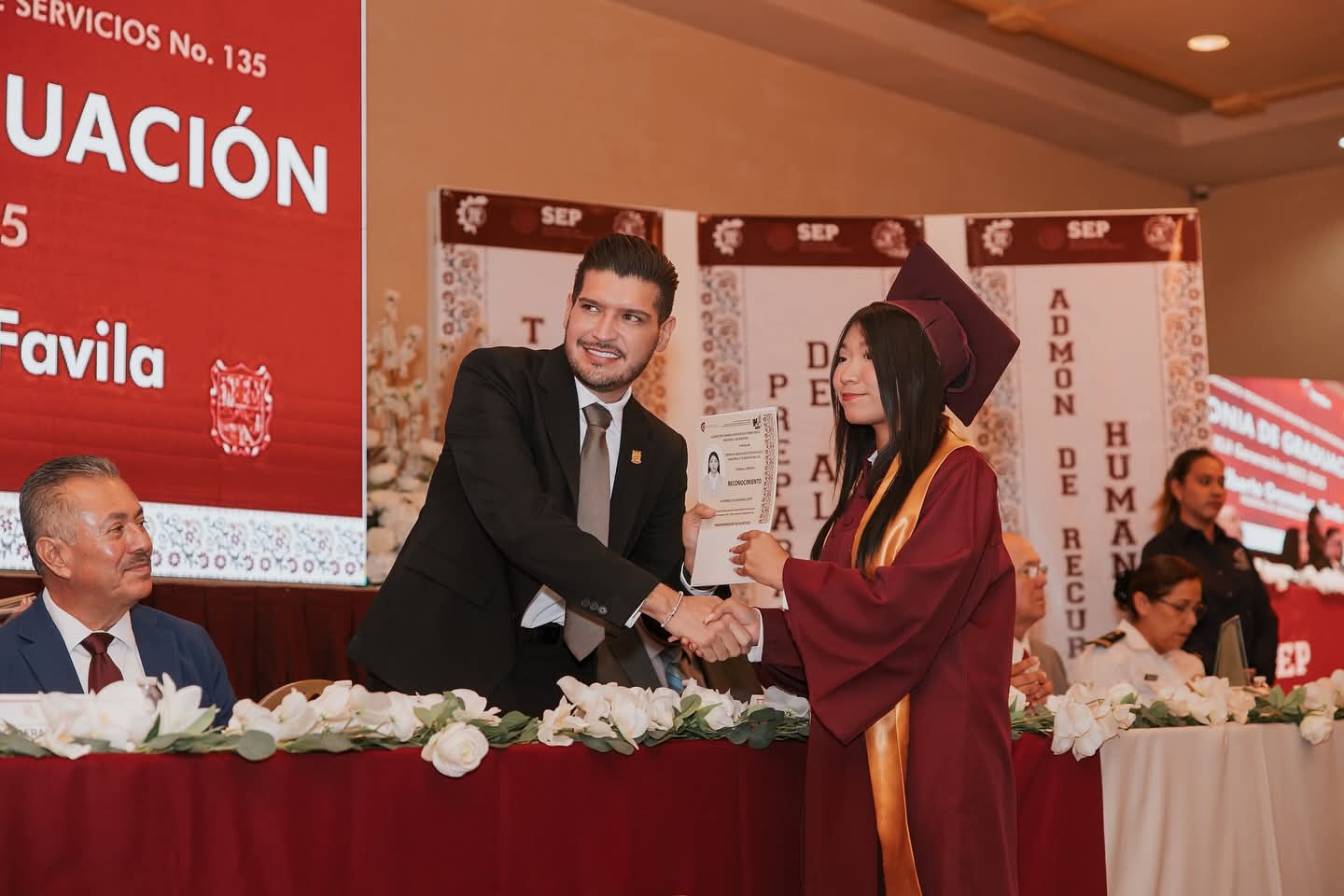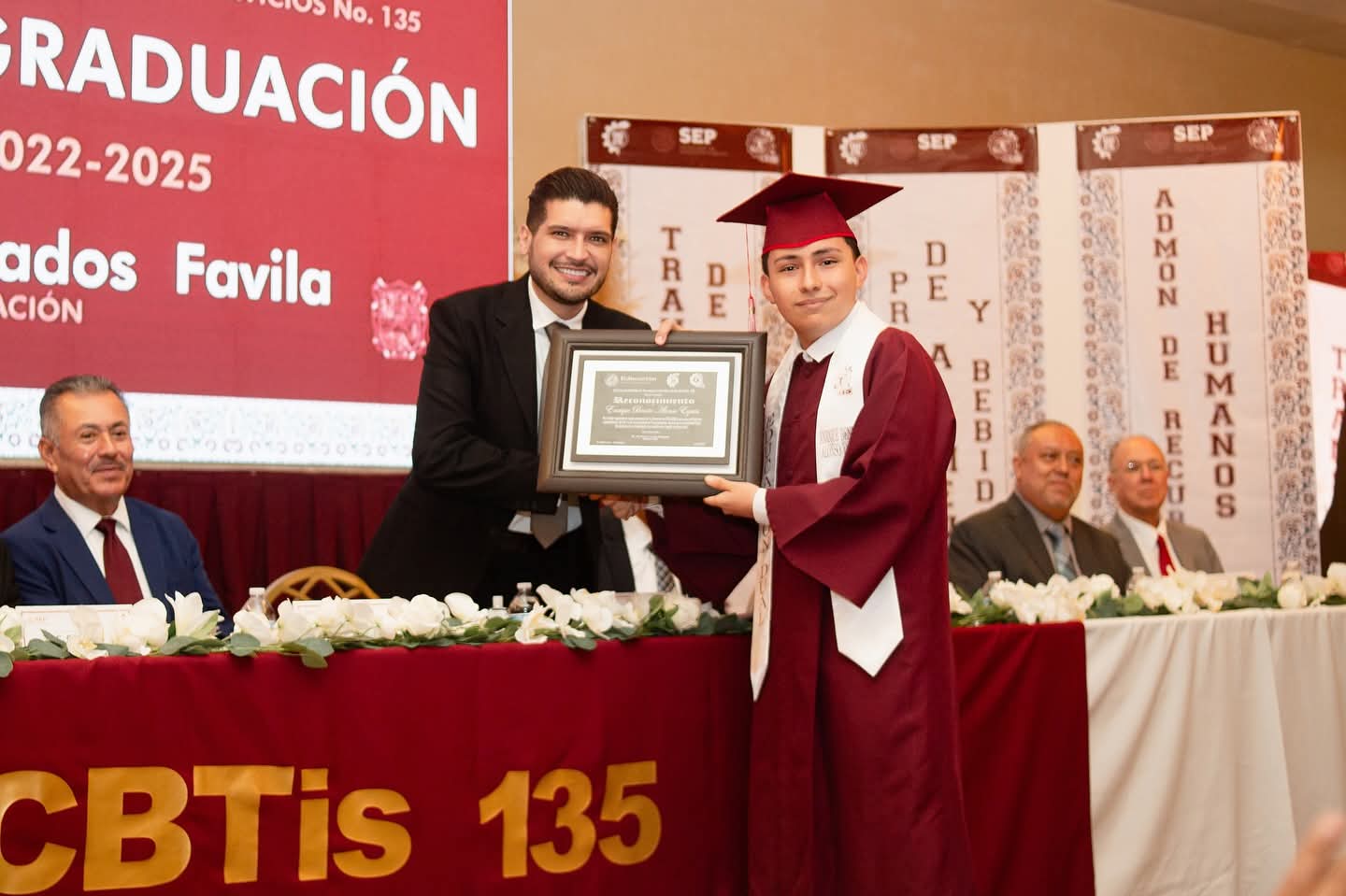 En el evento del turno vespertino, reiteró su orgullo por ser padrino de generación y reconoció el esfuerzo de los jóvenes. “Este logro es fruto de su esfuerzo, dedicación y constancia. Les deseo todo el éxito en la nueva etapa que está por comenzar. ¡Sigan soñando en grande!”, expresó.