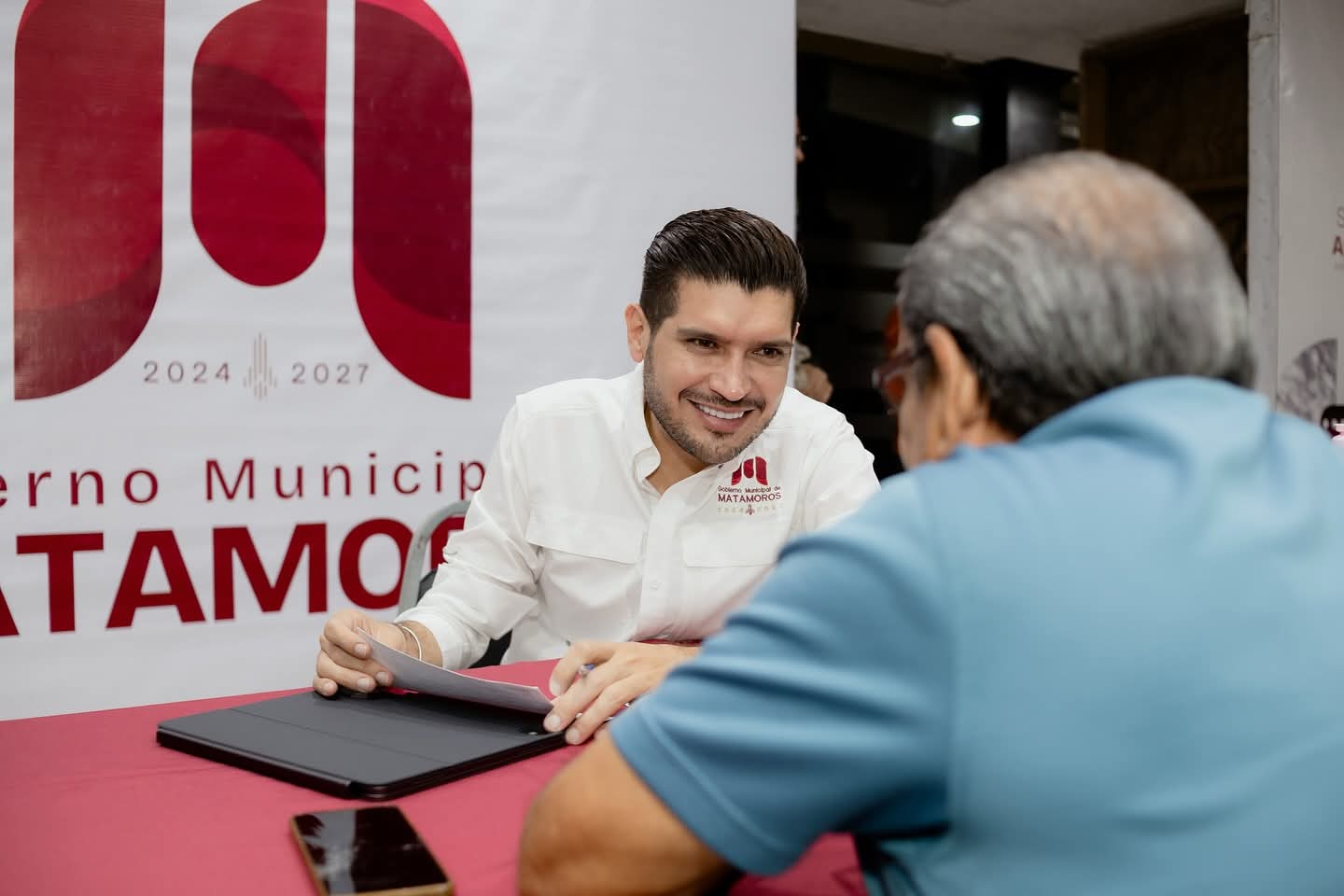 H. Matamoros, Tamaulipas.- De nueva cuenta se llevó a cabo una nueva edición de audiencia pública encabezado por el presidente municipal Beto Granados, quien personalmente escuchó y atendió a vecinos en una jornada de atención directa.
