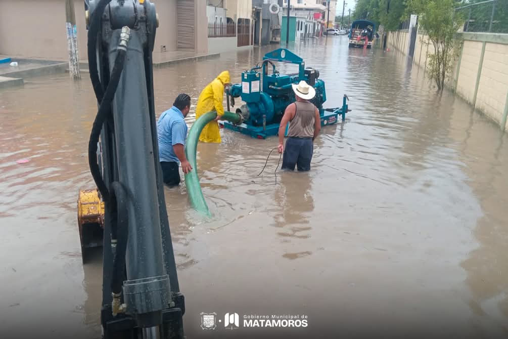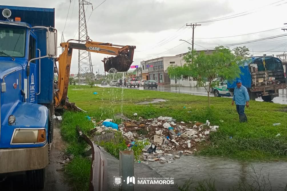 El Gobierno Municipal exhorta a la ciudadanía a colaborar activamente evitando tirar basura en las calles, canales y drenes, ya que esto permitirá que el agua fluya de manera más eficiente y se reduzcan los niveles de acumulación en distintos sectores de la ciudad. Con estas acciones, Matamoros avanza hacia una mejor gestión pluvial y demuestra que juntos se puede lograr que Brille Matamoros.