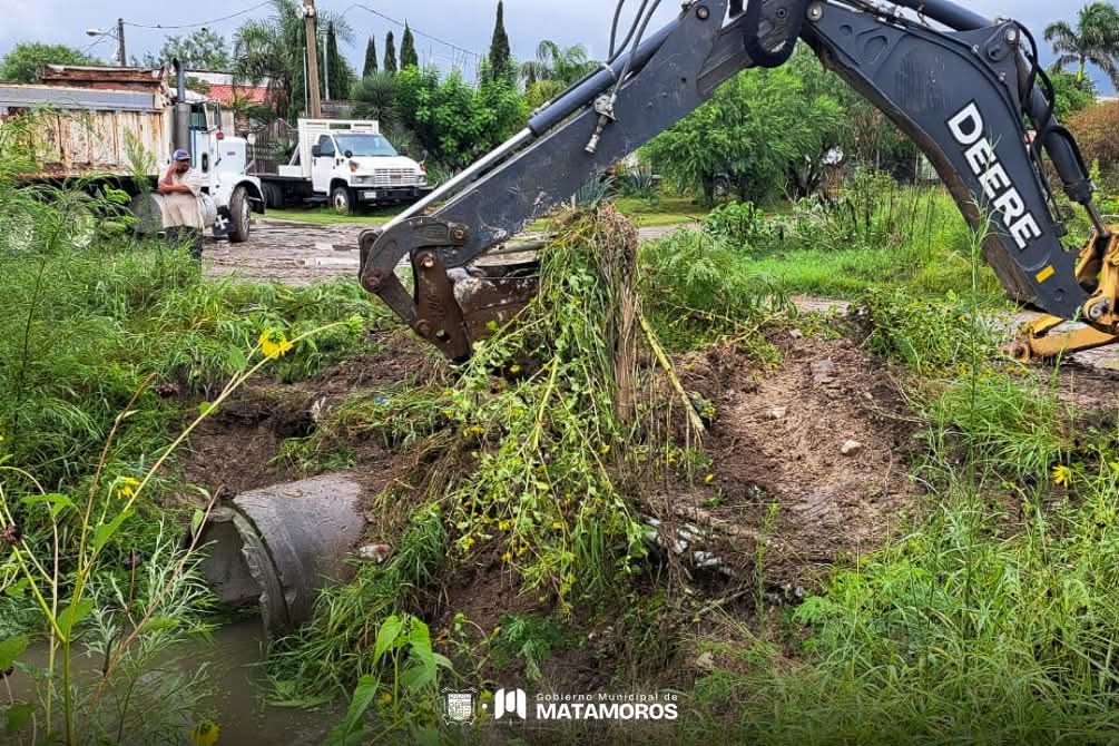 H. Matamoros, Tamaulipas.- El Gobierno de Matamoros que preside Beto Granados, a través de personal de la administración municipal y de la Junta de Aguas y Drenaje (JAD), ha intensificado las labores de limpieza en drenes, canales, alcantarillados y bocas de tormenta, con el objetivo de agilizar el desazolve y mejorar la capacidad de desalojo del agua durante las intensas lluvias que se han presentado en la ciudad.
