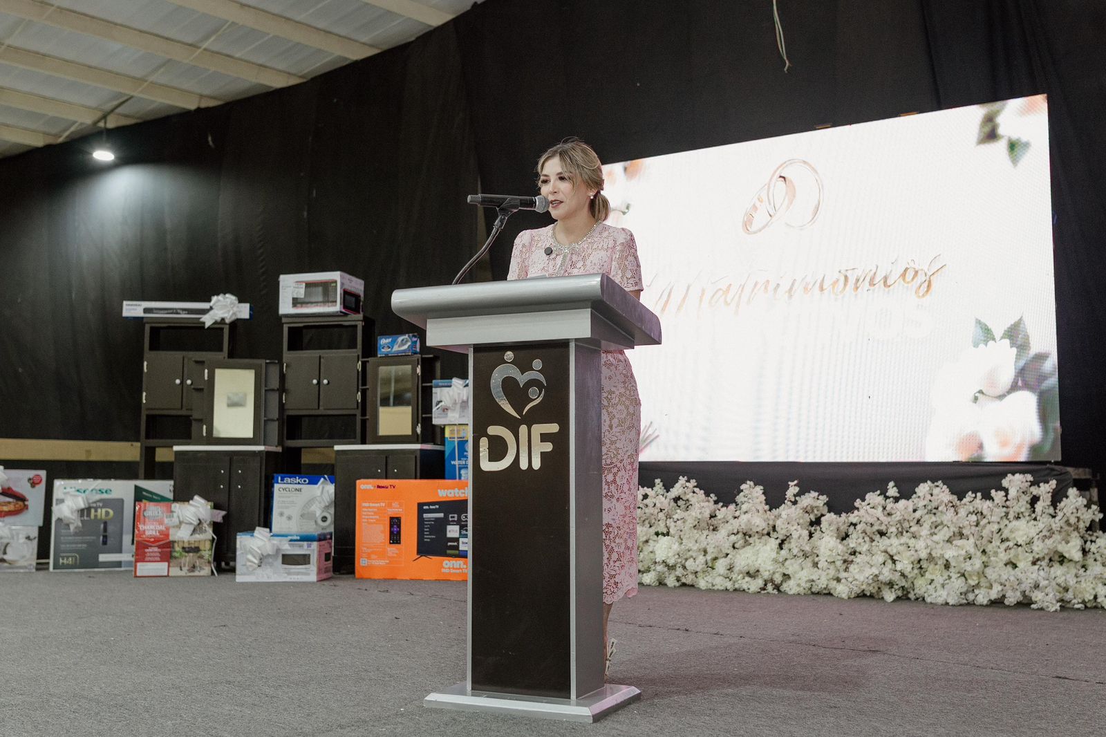 Durante la ceremonia, la Presidenta de DIF Matamoros Ana Ariceaga de Granados, expresó un emotivo mensaje felicitando a las parejas y manifestando su alegría al ver a cientos de personas comprometidas para contraer nupcias no solo en amor, si no también bajo el marco de la legalidad que brinda seguridad jurídica a las familias.