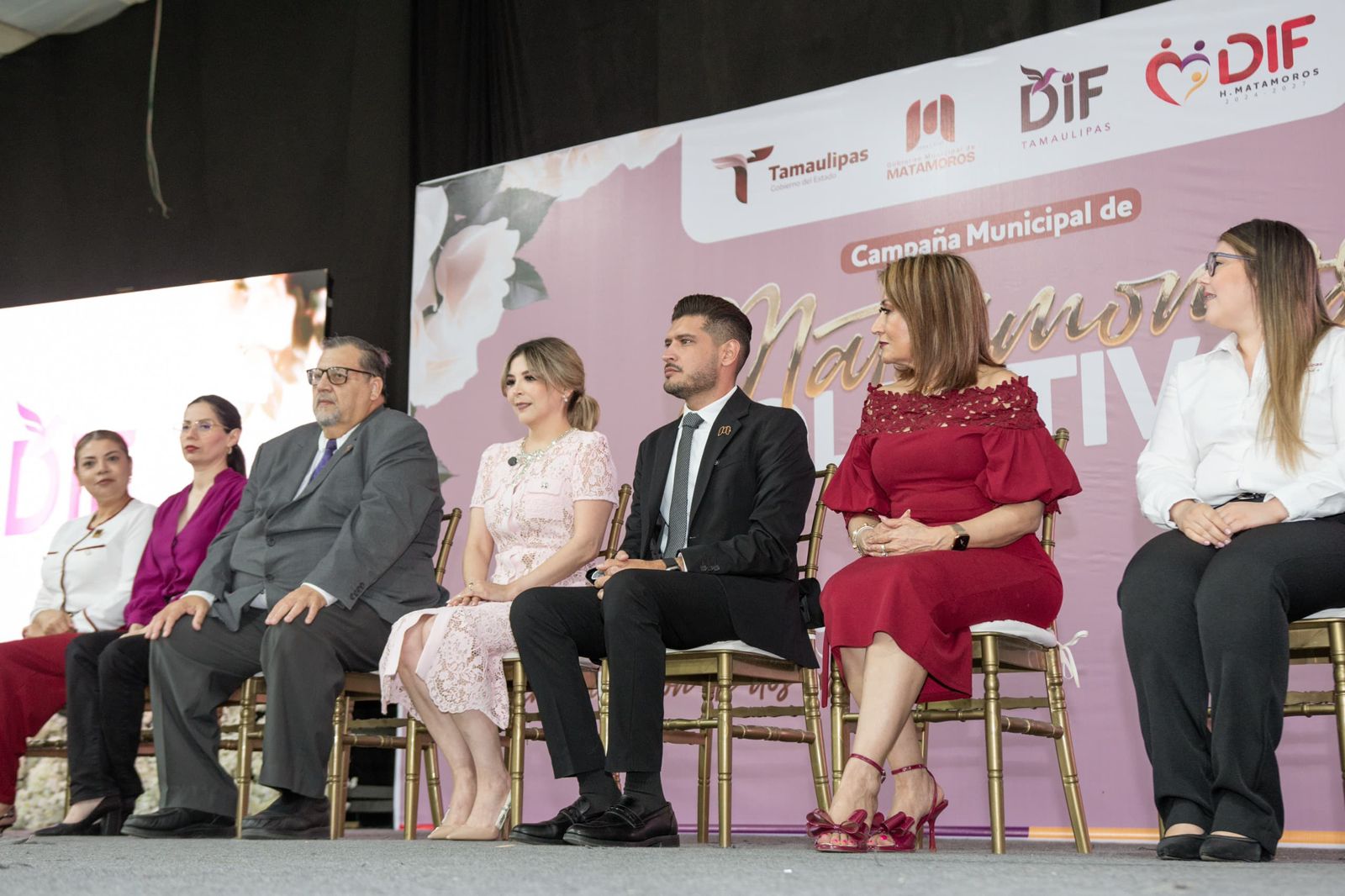 Registro Civil, Lic. Alejandra Monzón, oficialía N°4 del Registro Civil, Lic. Perla Guadalupe Medina Ruiz, Secretaria de Bienestar Social, Dra. María Elena Sánchez Cantú, Directora General del Sistema DIF Matamoros, Lic. Claudia Alvarado Serna, Directora del Instituto Municipal de la Mujer, Lic. Héctor Hugo Gutiérrez Treviño, Procurador de Protección para las Niñas, Niños y Adolescentes del Sistema DIF Matamoros, y el C. Jesus Sánchez Alvarado, Secretario del Exterior, en representación de Juan Villafuerte Morales, Secretario General del Sindicato SJOlIM.