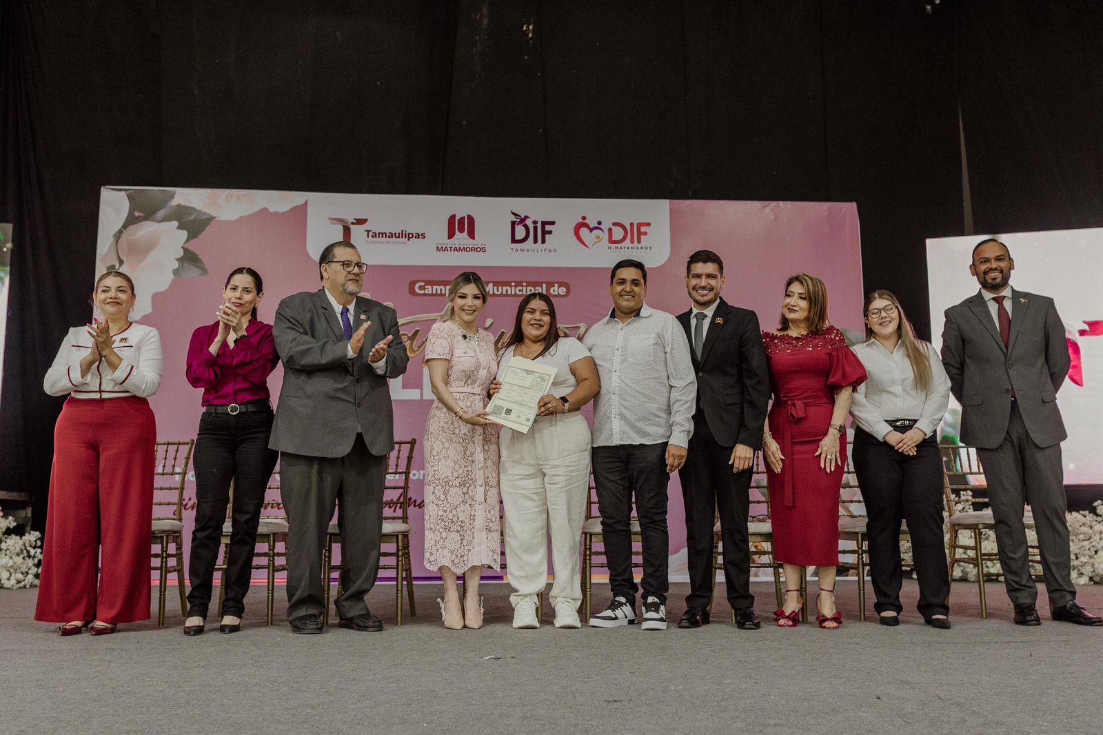Por su parte, el Lic. Alberto Granados también felicitó a los contrayentes, destacando su orgullo al ser testigo en donde tantas parejas confiaron para unir sus vidas en matrimonio. A su vez reconoció la excelente labor que realiza la presidenta de DIF Matamoros, en donde el amor y la empatía son el reflejo en cada campaña que emprenden. De igual manera agradeció al Procurador Estatal Mtro. Jorge Alberto Galván Garcés por su respaldo en estas actividades, y en especial a la Presidenta de DIF Tamaulipas Dra. María de Villarreal, por su liderazgo y apoyo.