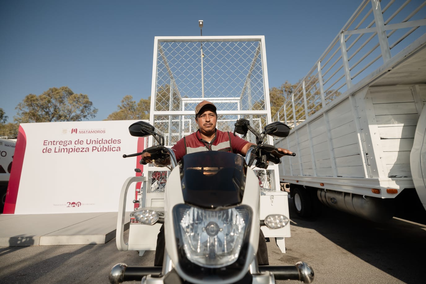 Heroica Matamoros, Tam.– Con el firme compromiso de transformar los servicios básicos y atender una de las demandas más sentidas de la población, el alcalde Beto Granados encabezó la entrega de nuevo equipamiento destinado a fortalecer la Dirección de Limpieza Pública.