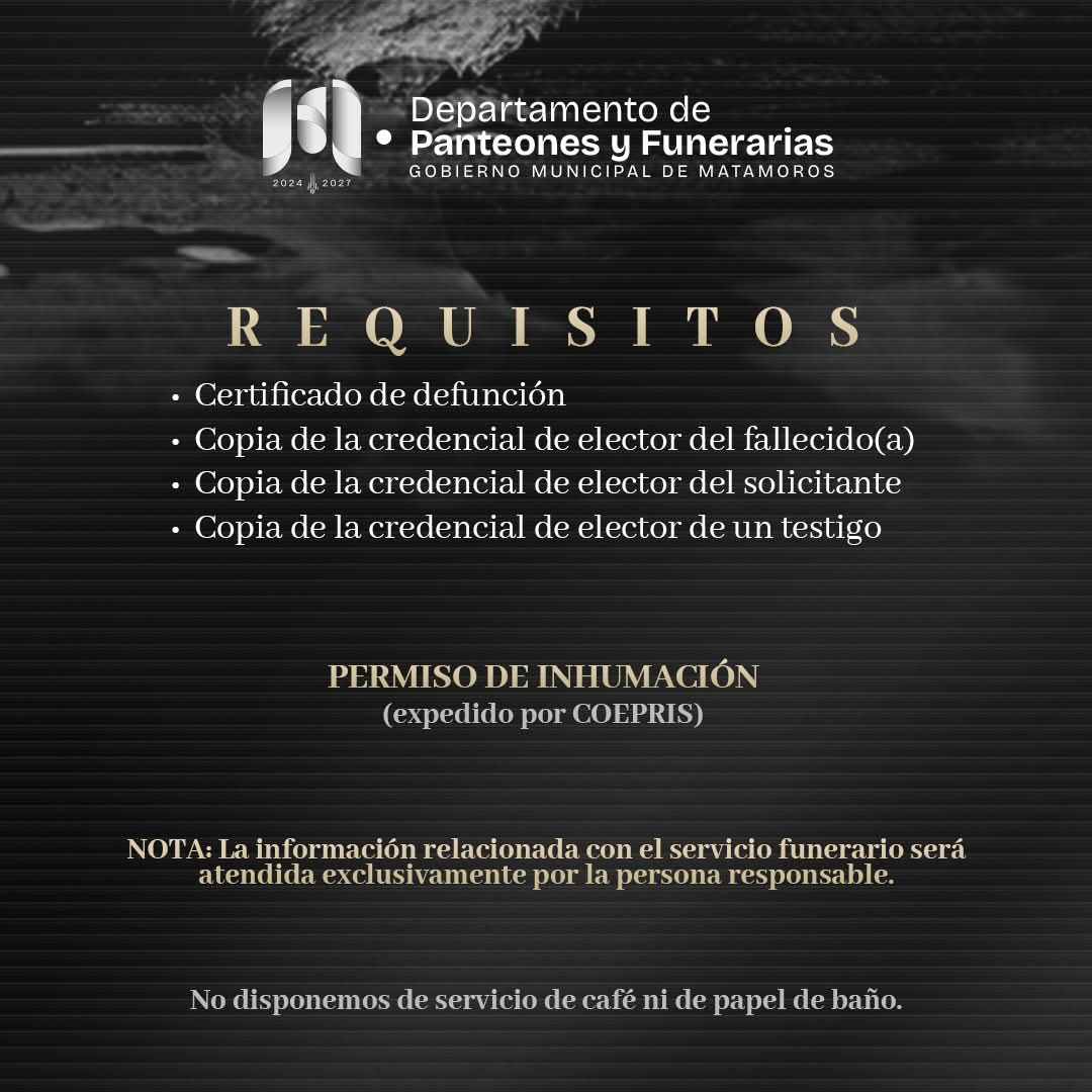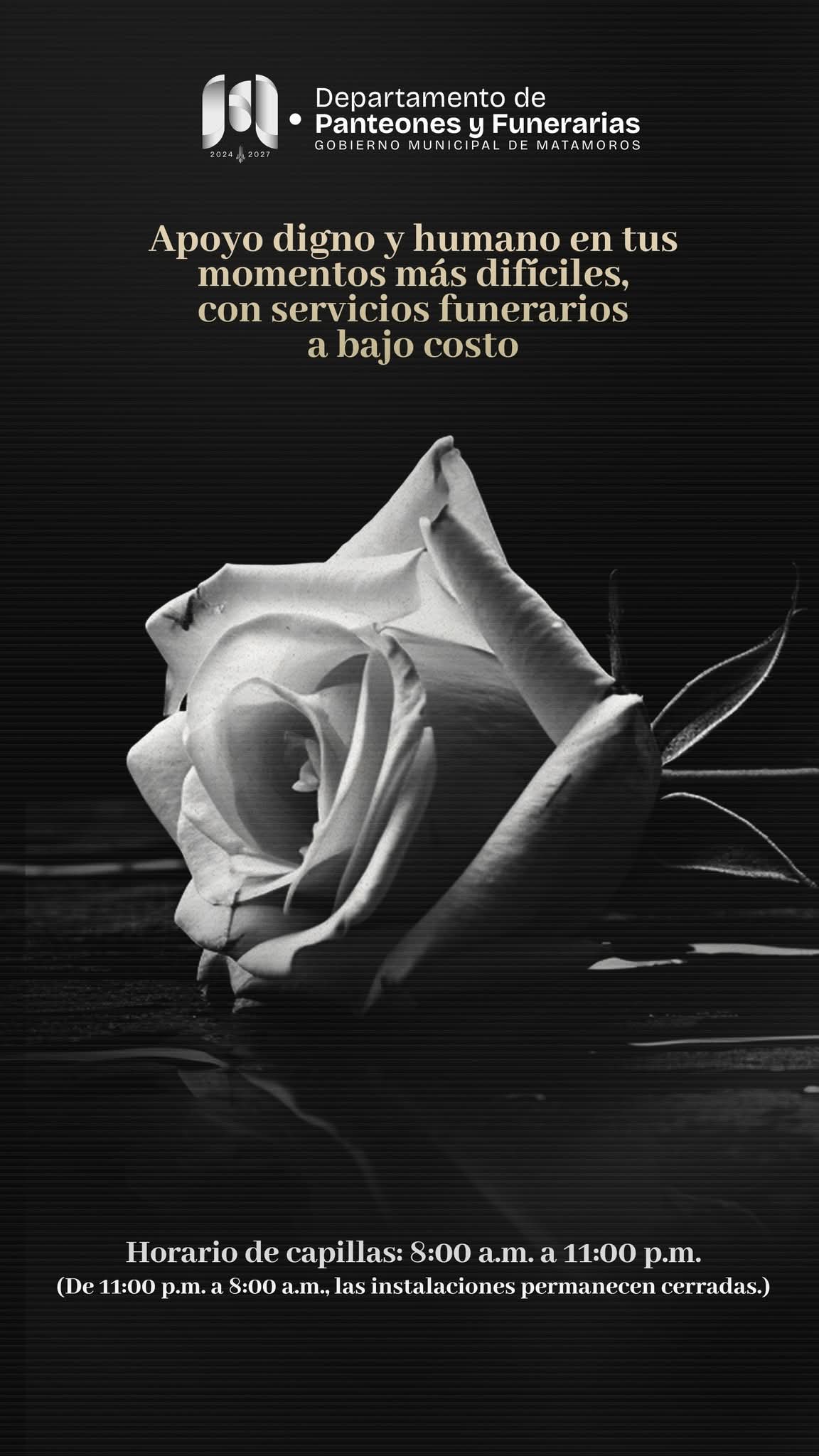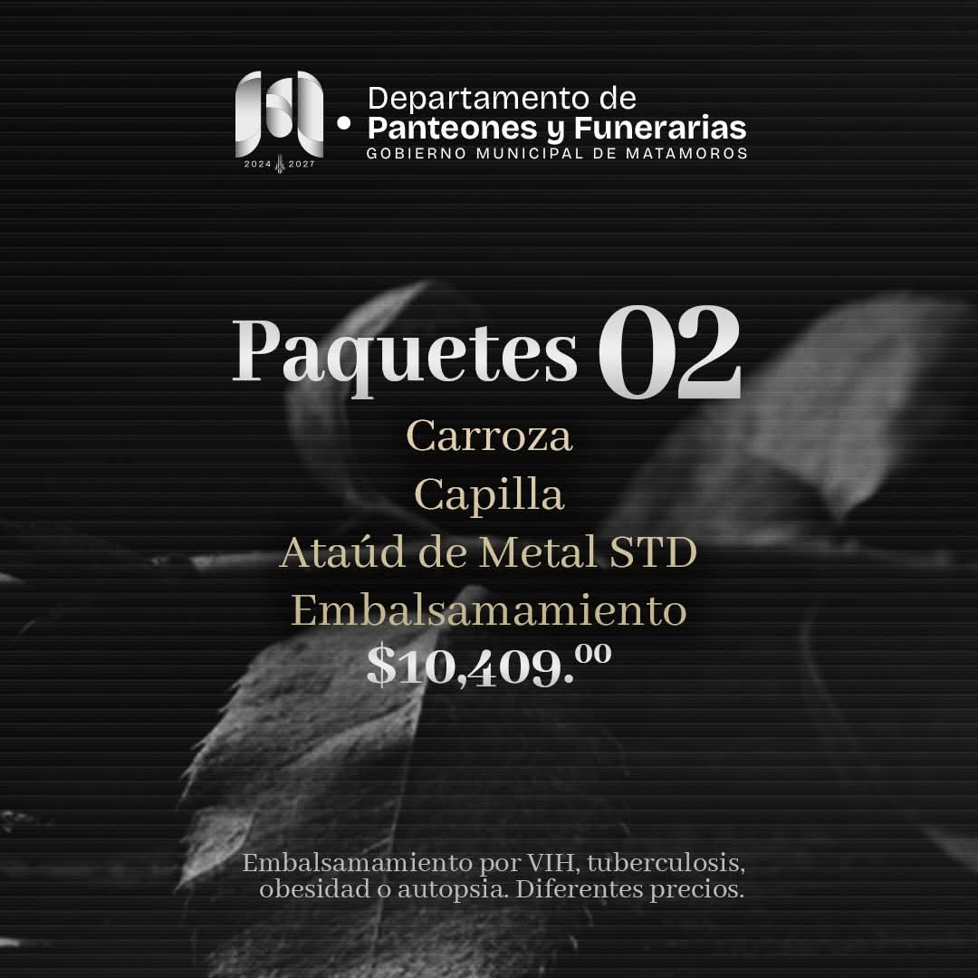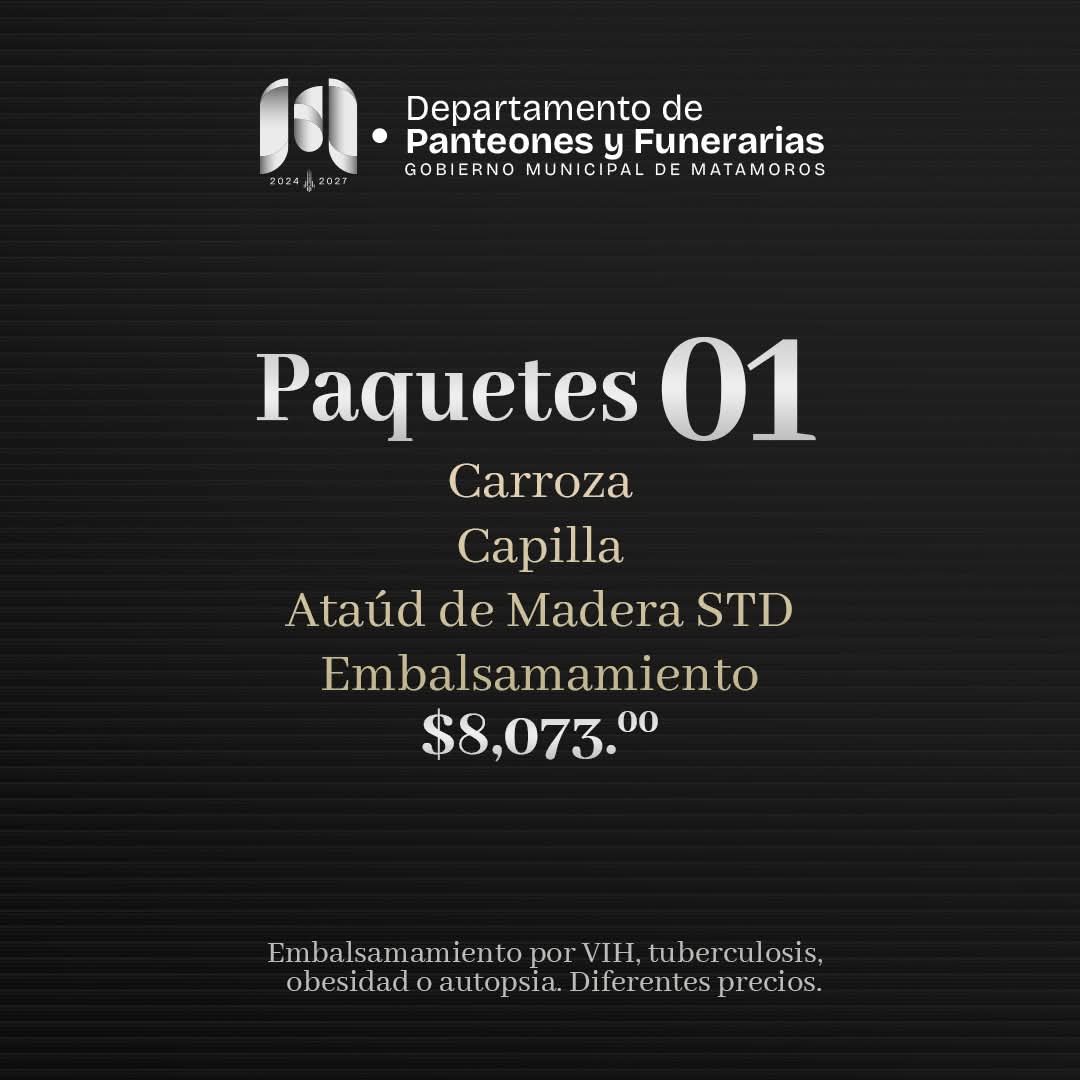 Matamoros, Tam.- El Gobierno de Beto Granados informó que en los momentos más difíciles, un apoyo digno y humano puede marcar la diferencia. Consciente de la carga emocional y económica que representa una pérdida, la administración pone a disposición de las familias paquetes funerarios accesibles, diseñados para ofrecer respaldo respetuoso y cercano.