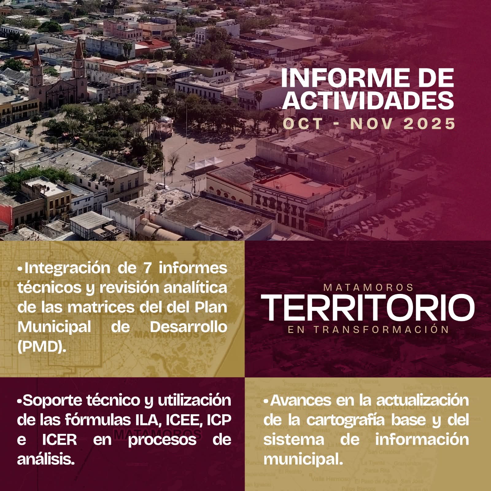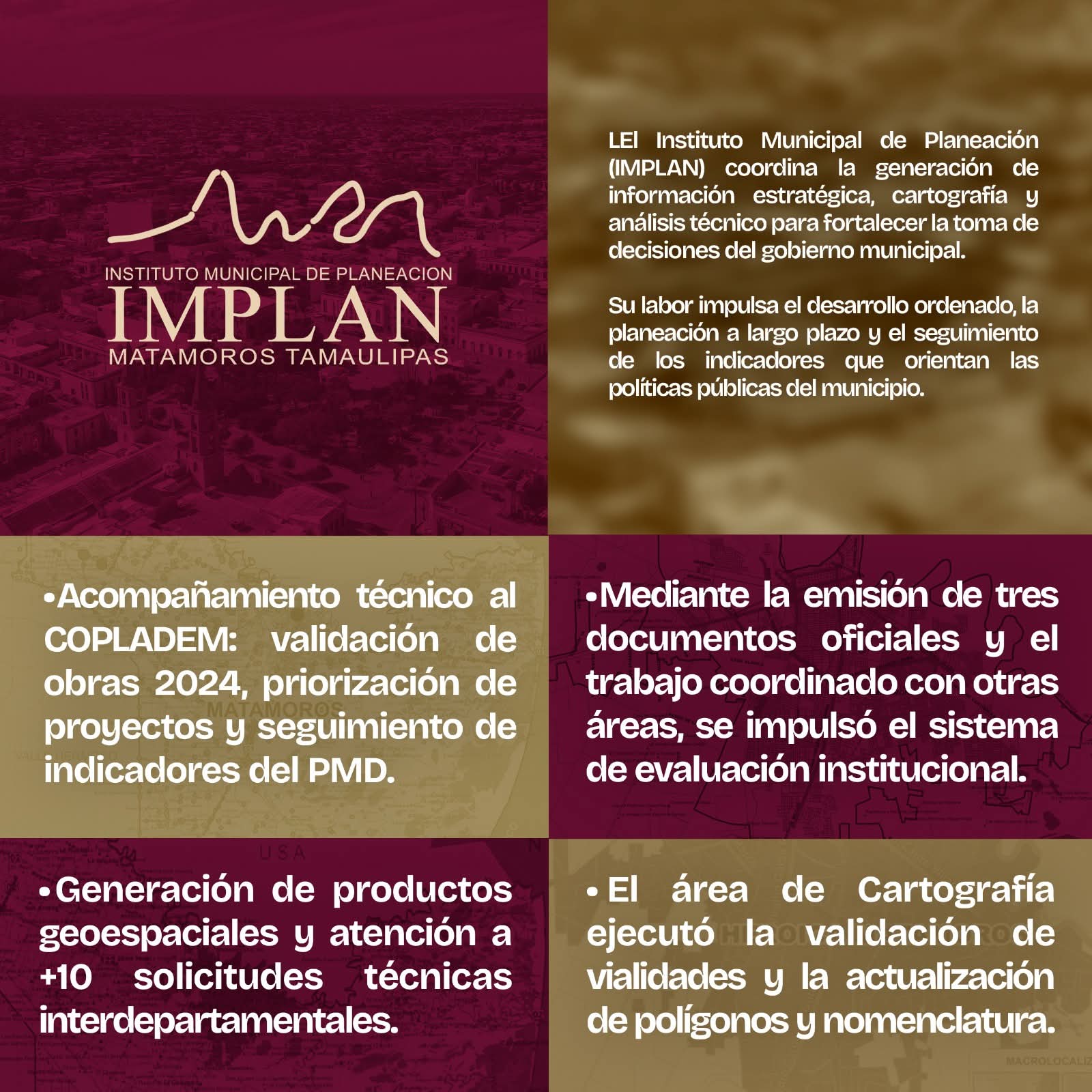 Matamoros, Tam.- El Gobierno de Beto Granados, a través del Instituto Municipal de Planeación (IMPLAN), coordinó la generación de información estratégica y cartográfica con el propósito de fortalecer la toma de decisiones del Gobierno Municipal, impulsando una gestión pública más eficiente, ordenada y basada en datos técnicos.