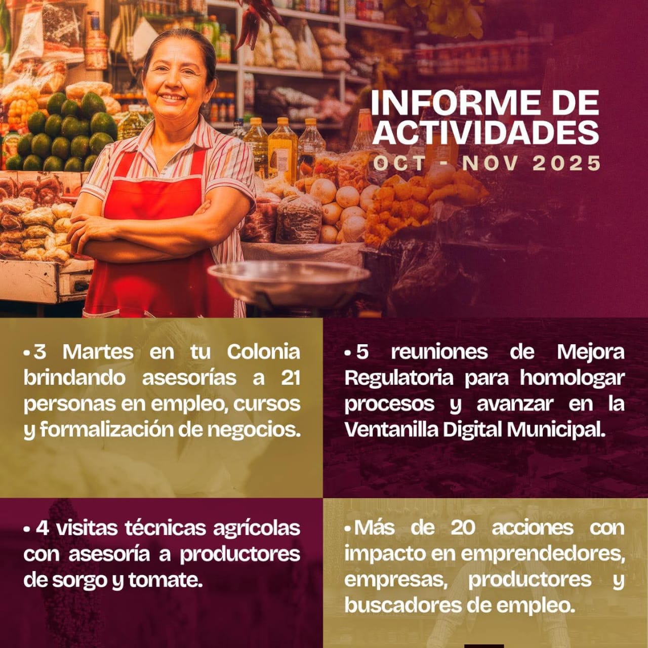 A través de asesorías especializadas, foros informativos, visitas técnicas y la implementación de programas de apoyo, se generaron oportunidades de crecimiento para emprendedores, micro, pequeñas y medianas empresas, productores locales y personas en búsqueda de empleo.
