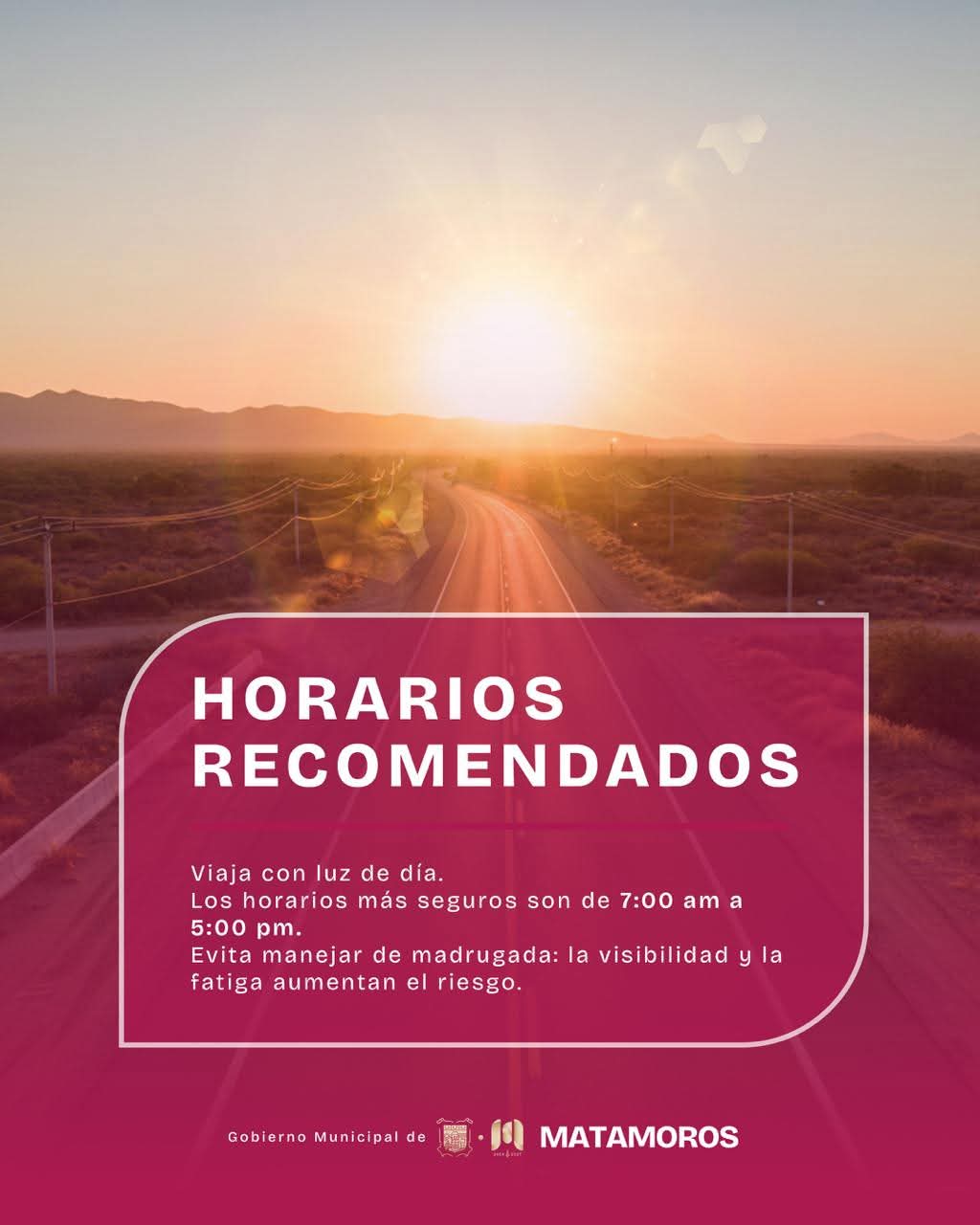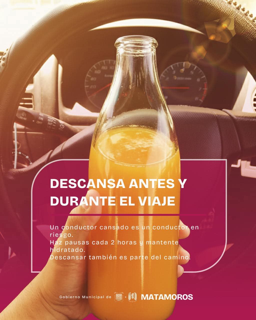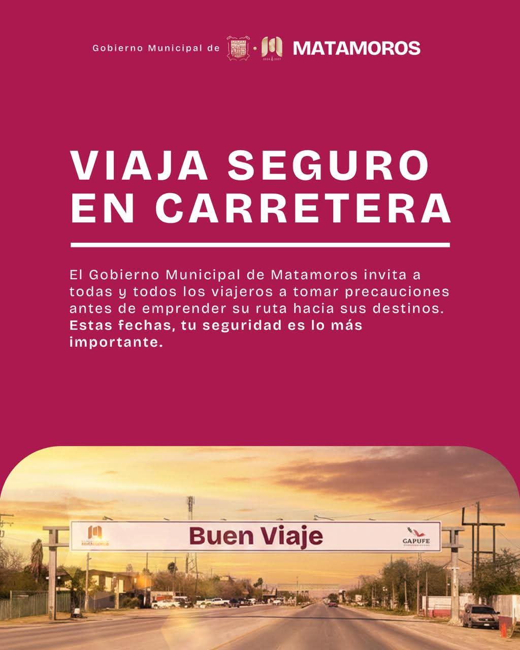 Matamoros, Tam.- El Gobierno de Beto Granados exhortó a la ciudadanía a priorizar la seguridad vial durante esta temporada, especialmente a quienes salen de la ciudad por carretera. A través de un llamado preventivo, se destacó la importancia de revisar las condiciones mecánicas de los vehículos, planear rutas con anticipación y conducir con responsabilidad antes y durante cada trayecto.