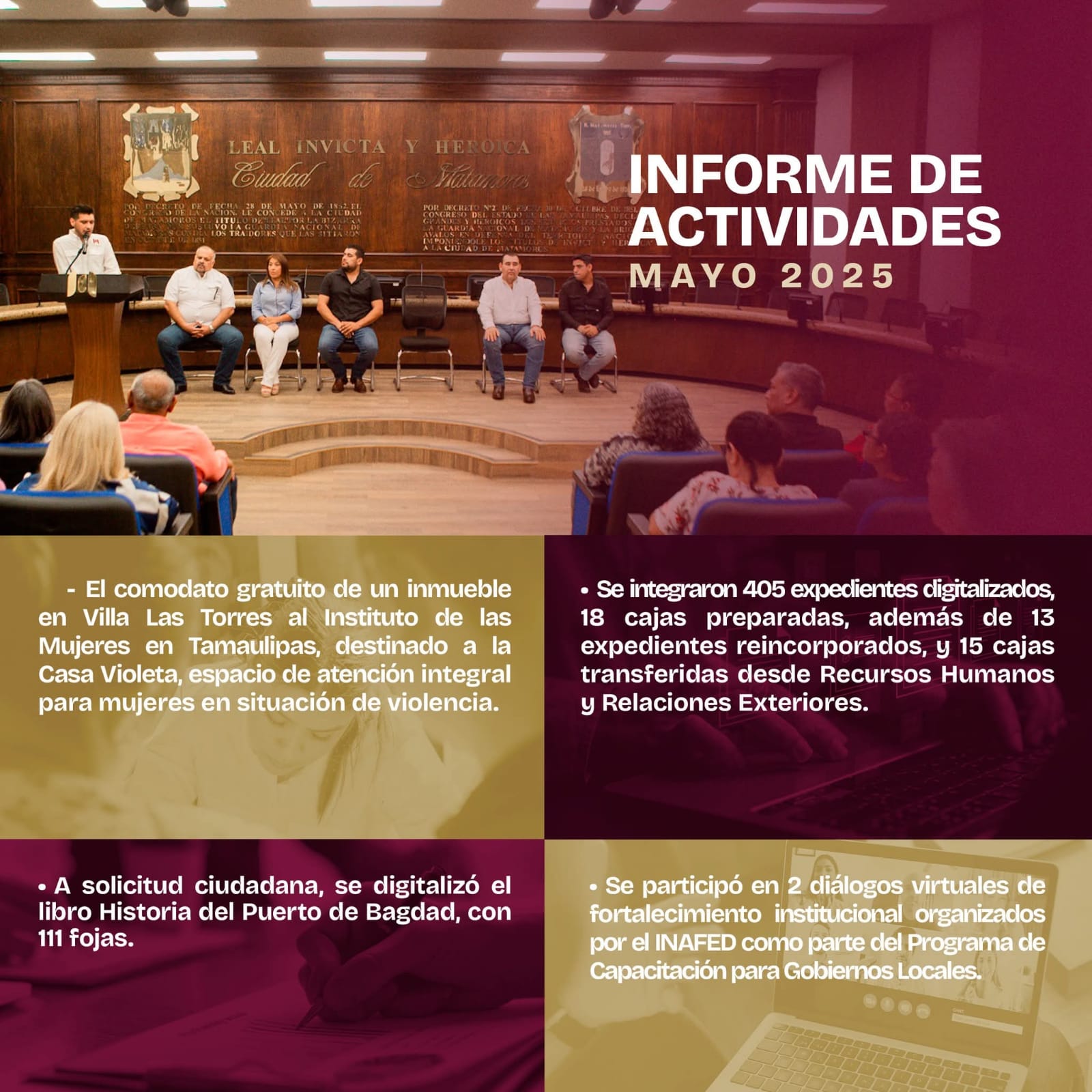 H. Matamoros, Tamaulipas.- El Gobierno de Matamoros, que preside Beto Granados, informó que en mayo, la Secretaría del Ayuntamiento llevó a cabo acciones clave para fortalecer la legalidad y promover la inclusión social en el municipio. Estas acciones reflejan el compromiso del gobierno con el servicio público eficiente, equitativo y cercano a las y los matamorenses, bajo el enfoque de un Gobierno de Territorio y un Gobierno Cercano al Pueblo.