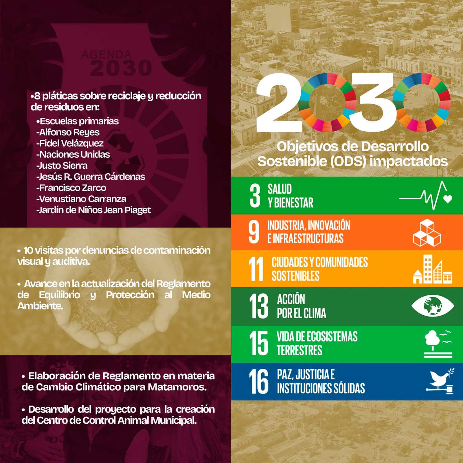 En materia ambiental, se promovieron hábitos sustentables mediante talleres, charlas informativas y la actualización de reglamentos, reforzando el compromiso con la Agenda 2030 y el desarrollo sostenible. Este trabajo coordinado refleja una administración activa, cercana y comprometida con construir un municipio más ordenado, verde y seguro para todos.