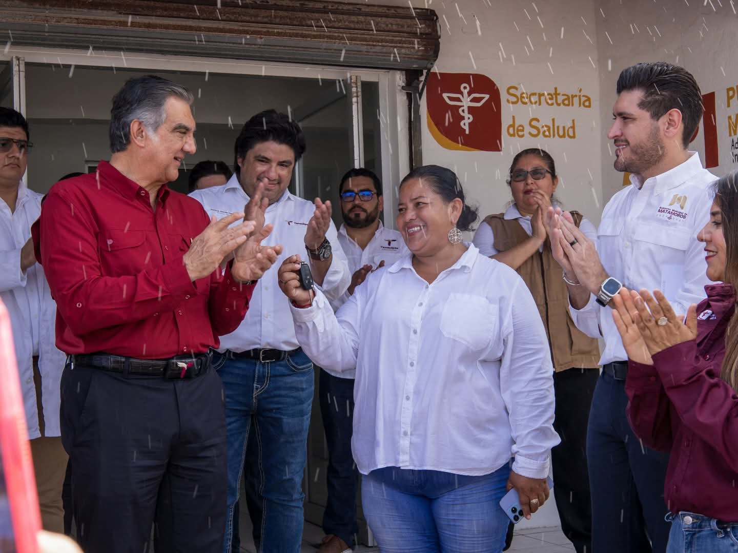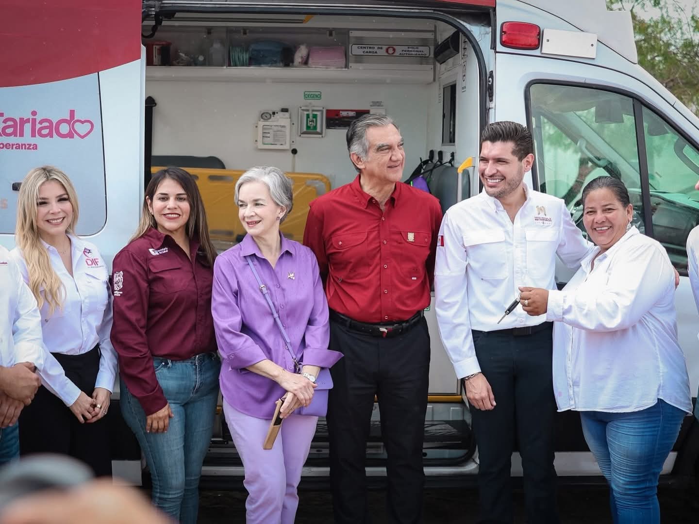H. Matamoros, Tamaulipas.- El gobernador del estado, Américo Villarreal Anaya, en compañía de su esposa, María de Villarreal, realizó en el poblado Higuerillas la entrega de la rehabilitación del Centro de Salud y de una ambulancia; también le acompañó el alcalde de Matamoros, Beto Granados, y la presidenta del DIF Matamoros, Ana Ariceaga de Granados. Estas acciones fortalecen la atención médica y mejoran la capacidad de respuesta ante emergencias para las familias de esta comunidad, con el apoyo de API Puerto de Matamoros.