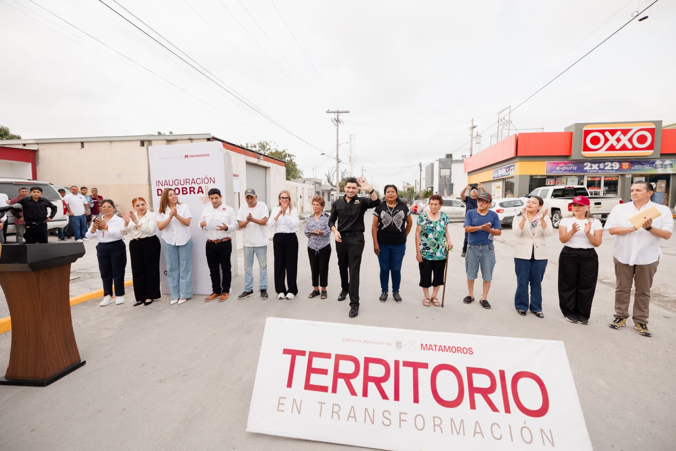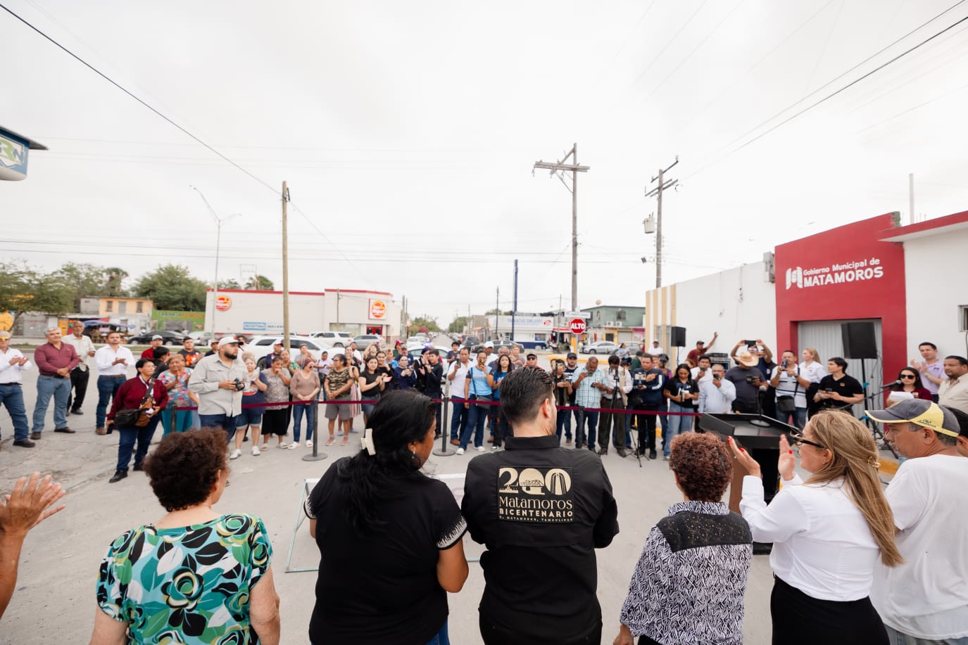 H. Matamoros, Tamaulipas.- Con una inversión superior a los 3 millones 500 mil pesos provenientes del programa de regularización de vehículos usados de procedencia extranjera (REPUVE), el presidente municipal, Beto Granados, inauguró la obra de pavimentación y rehabilitación de drenaje en la calle Lic. Francisco Castellanos.