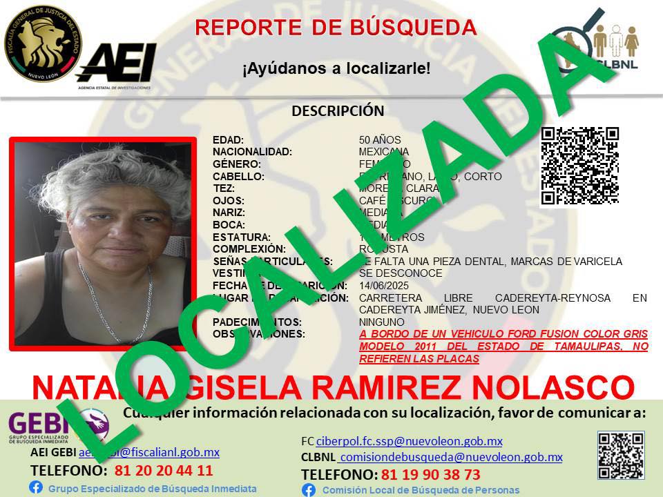 Tras varios días de búsqueda, la Fiscalía de Nuevo León confirmó que el enfermero Pedro Antonio Lorenzo Martínez y tres mujeres reportadas como desaparecidas en la carretera Monterrey-Reynosa fueron encontrados con vida.