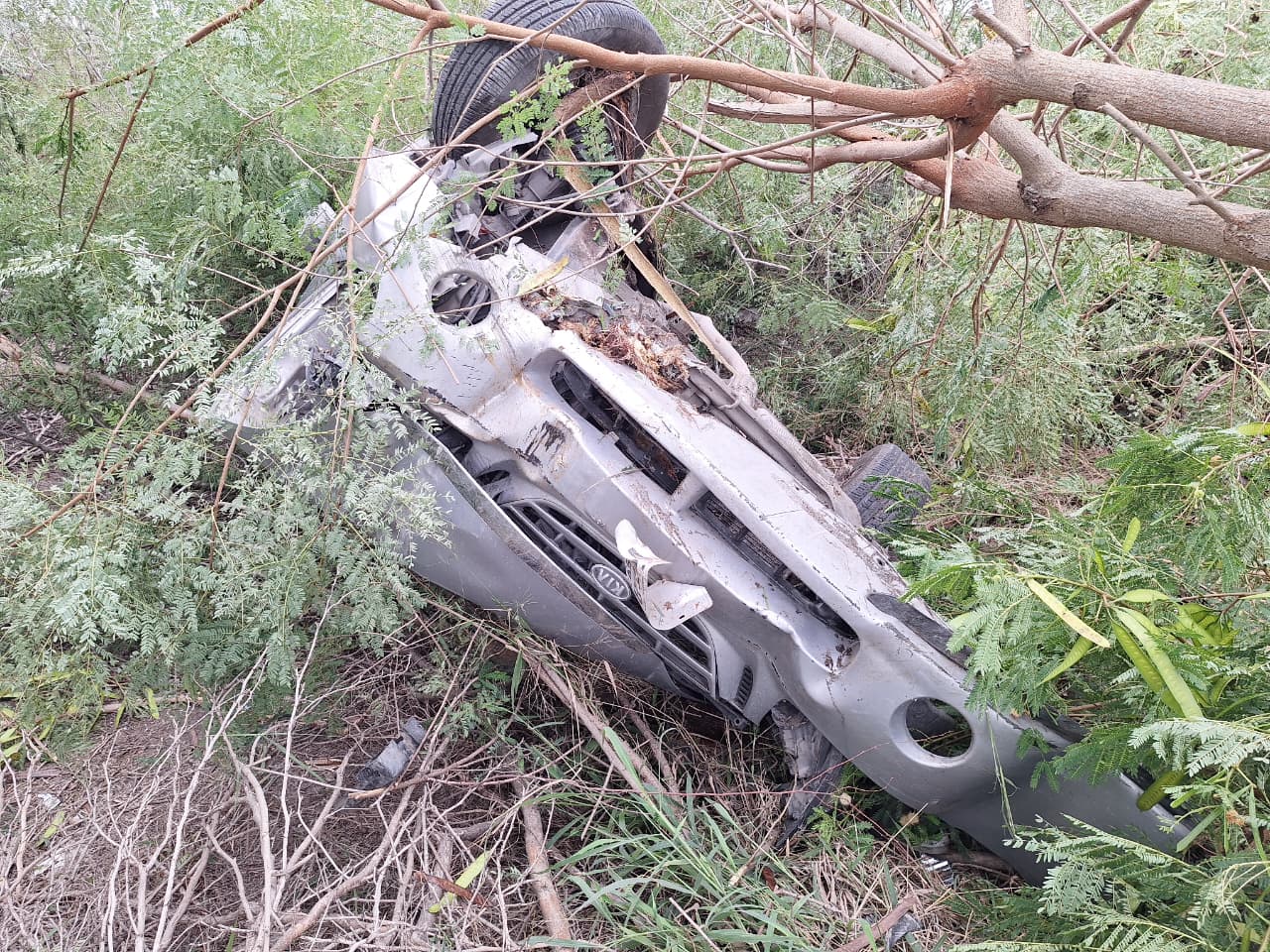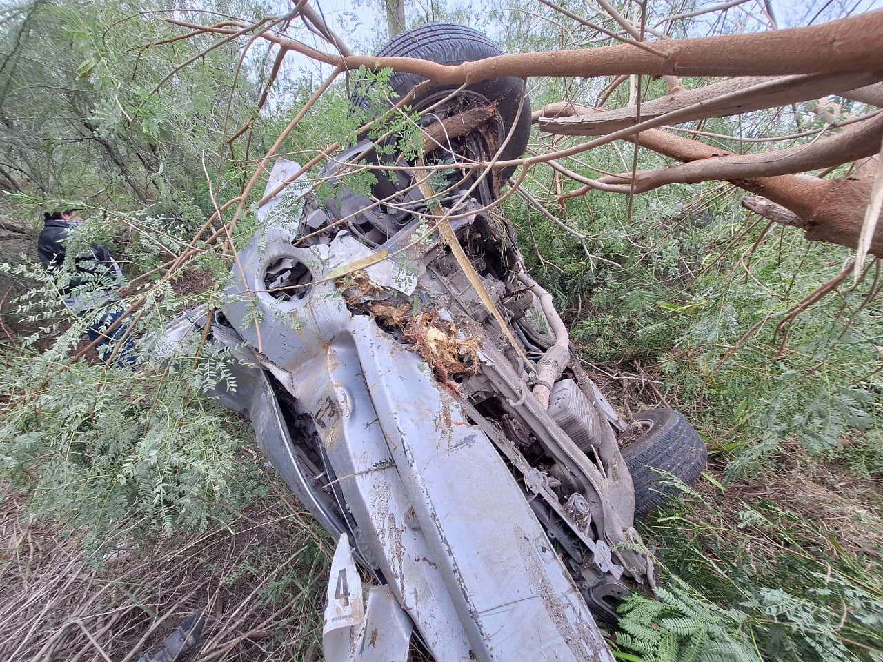 De acuerdo con los primeros informes, la conductora presuntamente circulaba a exceso de velocidad cuando pierde el control del volante, sale de la carretera y termina volcando entre la maleza de un terreno agreste.