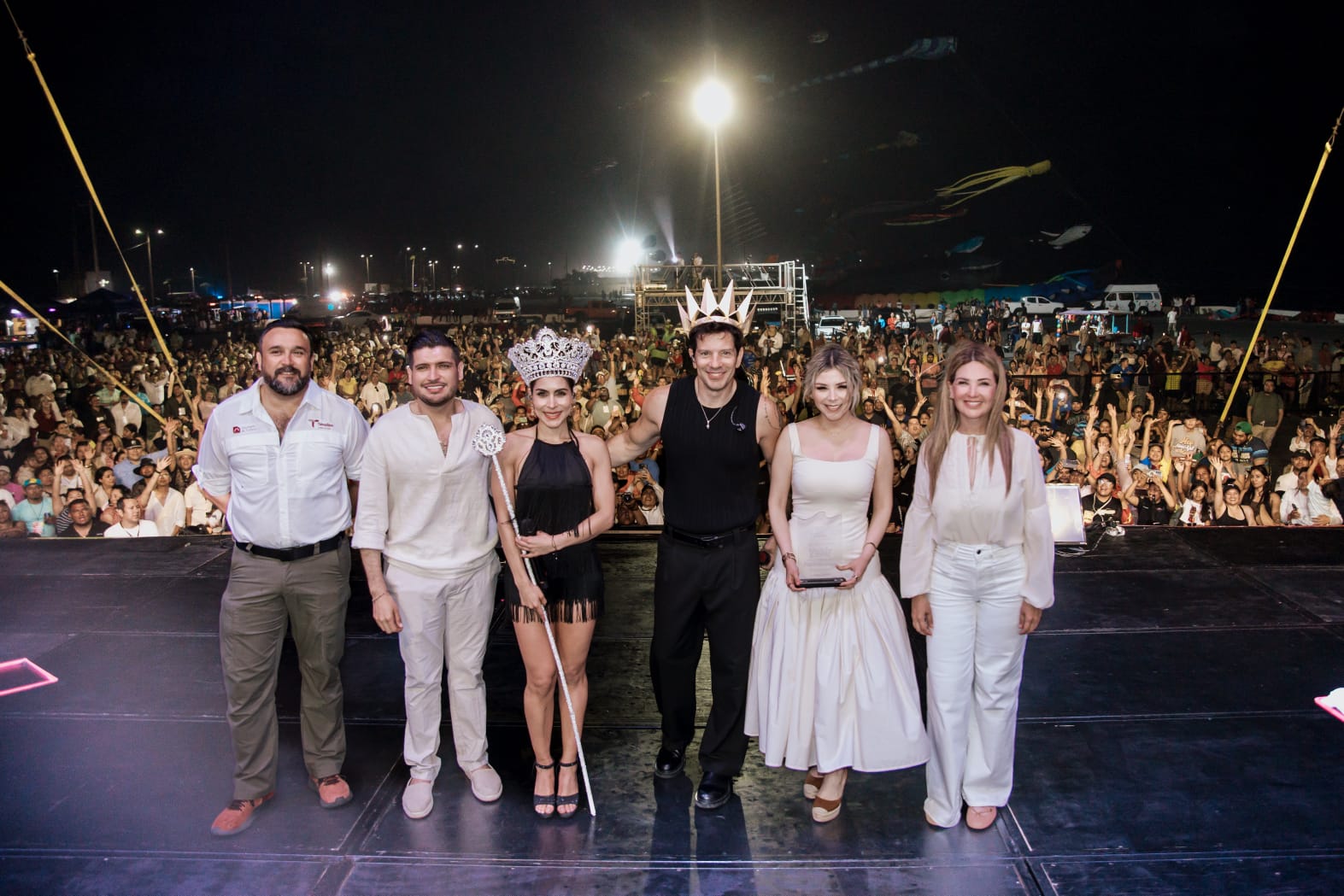 En este marco de fiesta, el alcalde Beto Granados, acompañado por la presidenta del Sistema DIF, Anita de Granados, y contando con la distinguida presencia del Secretario de Turismo de Tamaulipas, Benjamín Hernández Rodríguez, encabezó la coronación de los artistas María León y Yahir como los soberanos del Festival del Mar 2026.