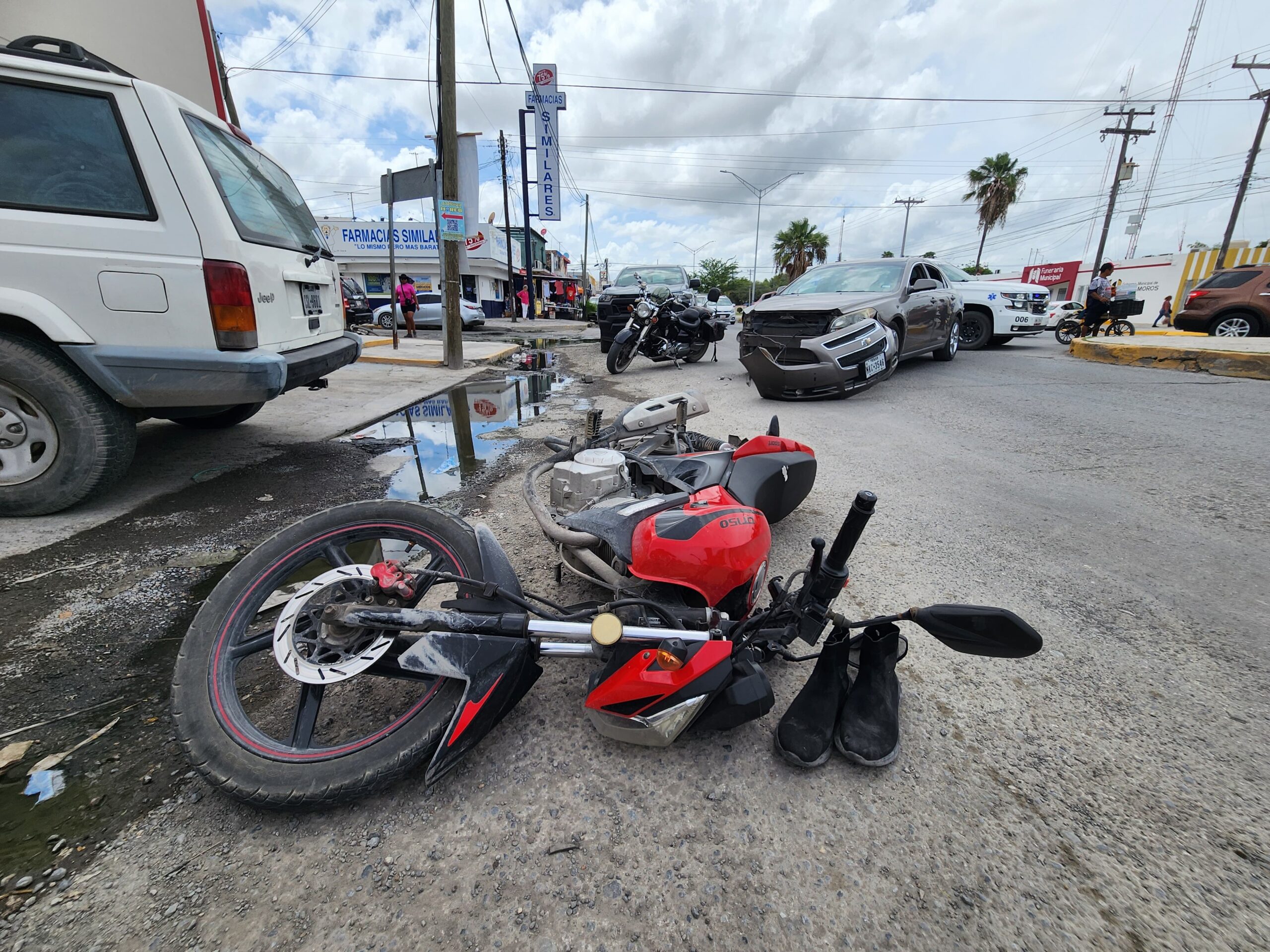 De acuerdo con los primeros reportes, el motociclista circulaba con preferencia de paso en dirección al oriente sobre dicha avenida, cuando repentinamente un automóvil se le atravesó al intentar ingresar al estacionamiento de un negocio dedicado a la venta de quesos, provocando un fuerte impacto.