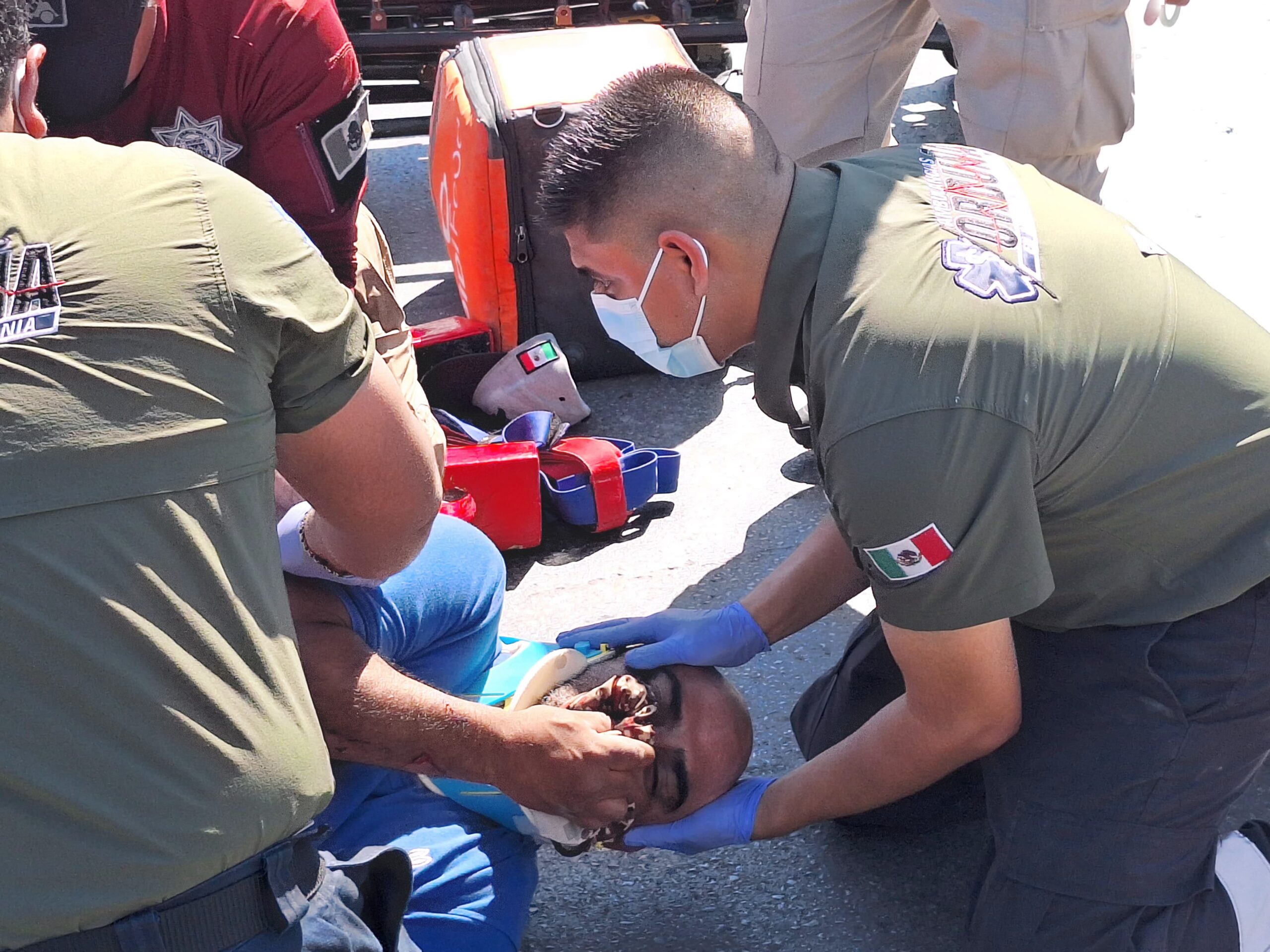 Tras el percance, paramédicos de Ambulancias Orduña acudieron al lugar para brindarle los primeros auxilios al lesionado.