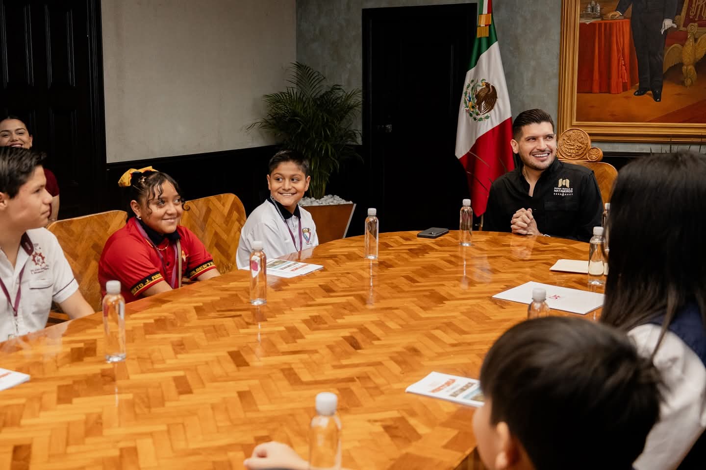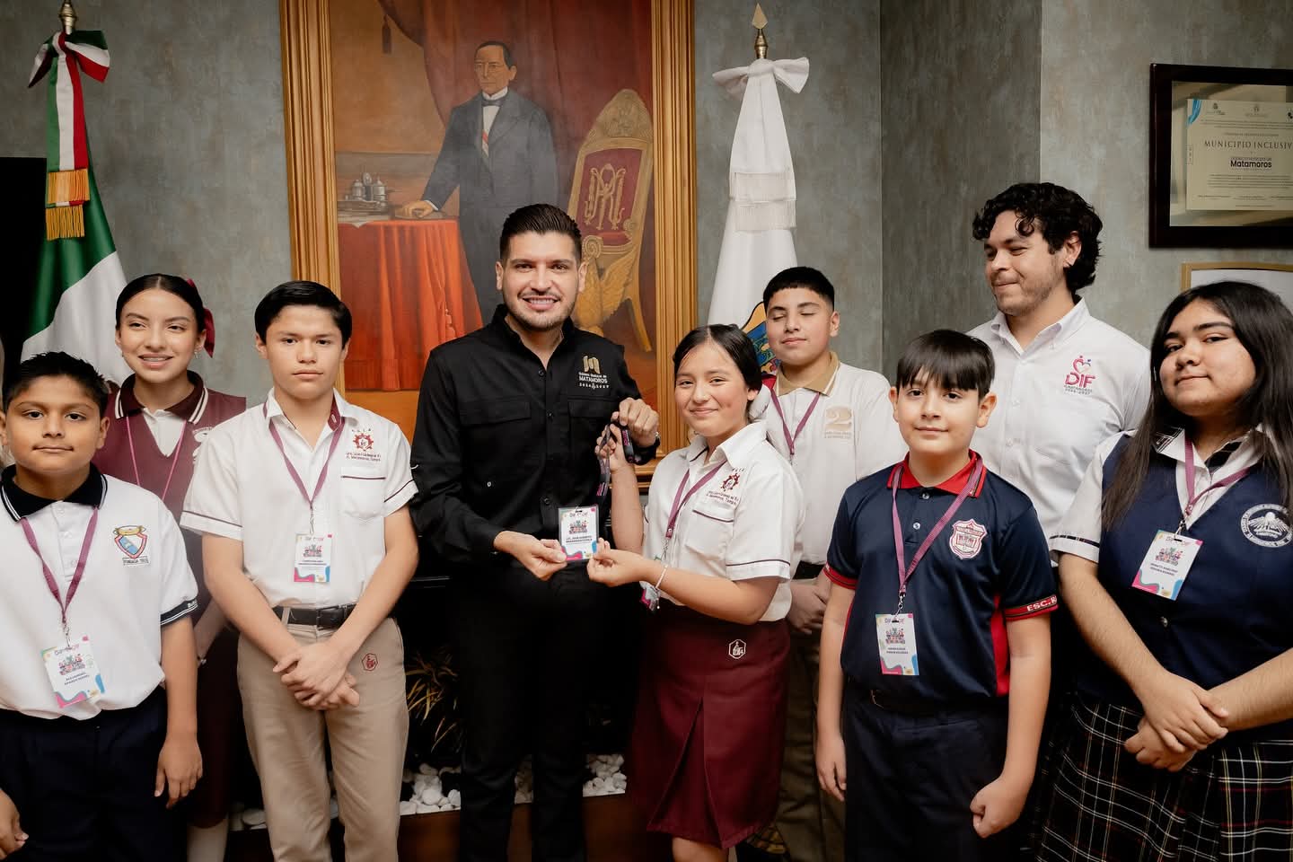 H. Matamoros, Tamaulipas.— El alcalde de Matamoros, Beto Granados, expresó su entusiasmo al recibir en la Presidencia Municipal a niñas, niños y adolescentes que forman parte de la Red Impulsora de la Transformación. El encuentro se llevó a cabo en la sala Benito Juárez, donde los participantes también visitaron las instalaciones del DIF Municipal.