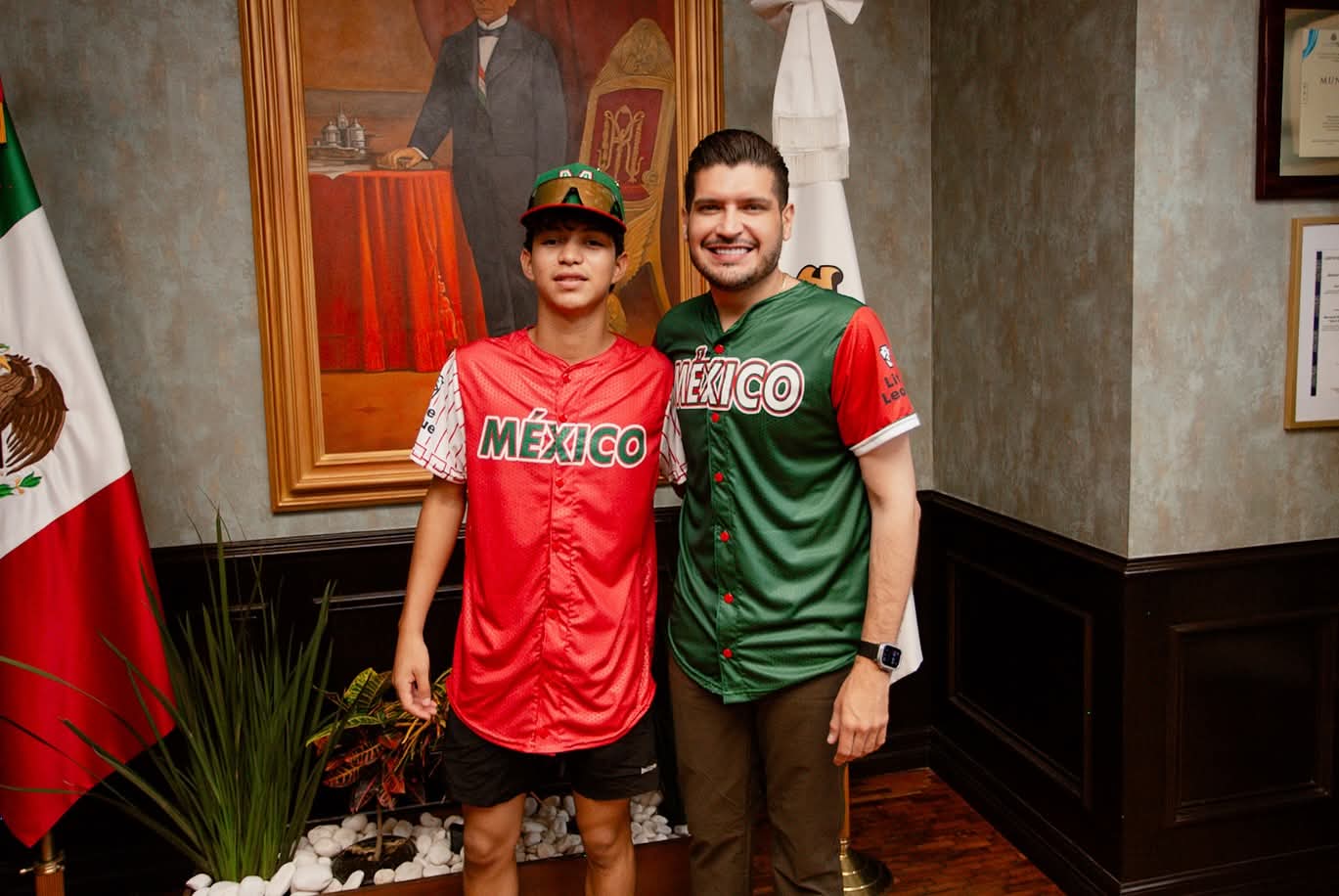 H. Matamoros, Tamaulipas .- El presidente municipal, Beto Granados, recibió al equipo de la Liga Pequeña de Béisbol Villa del Refugio A.C., quienes representarán a Matamoros y a México en una competencia internacional que se llevará a cabo en Guatemala. Durante el encuentro, el alcalde expresó su reconocimiento a los jóvenes deportistas por su dedicación, disciplina y pasión por el béisbol, valores que, dijo, son ejemplo para toda la niñez y juventud matamorense.