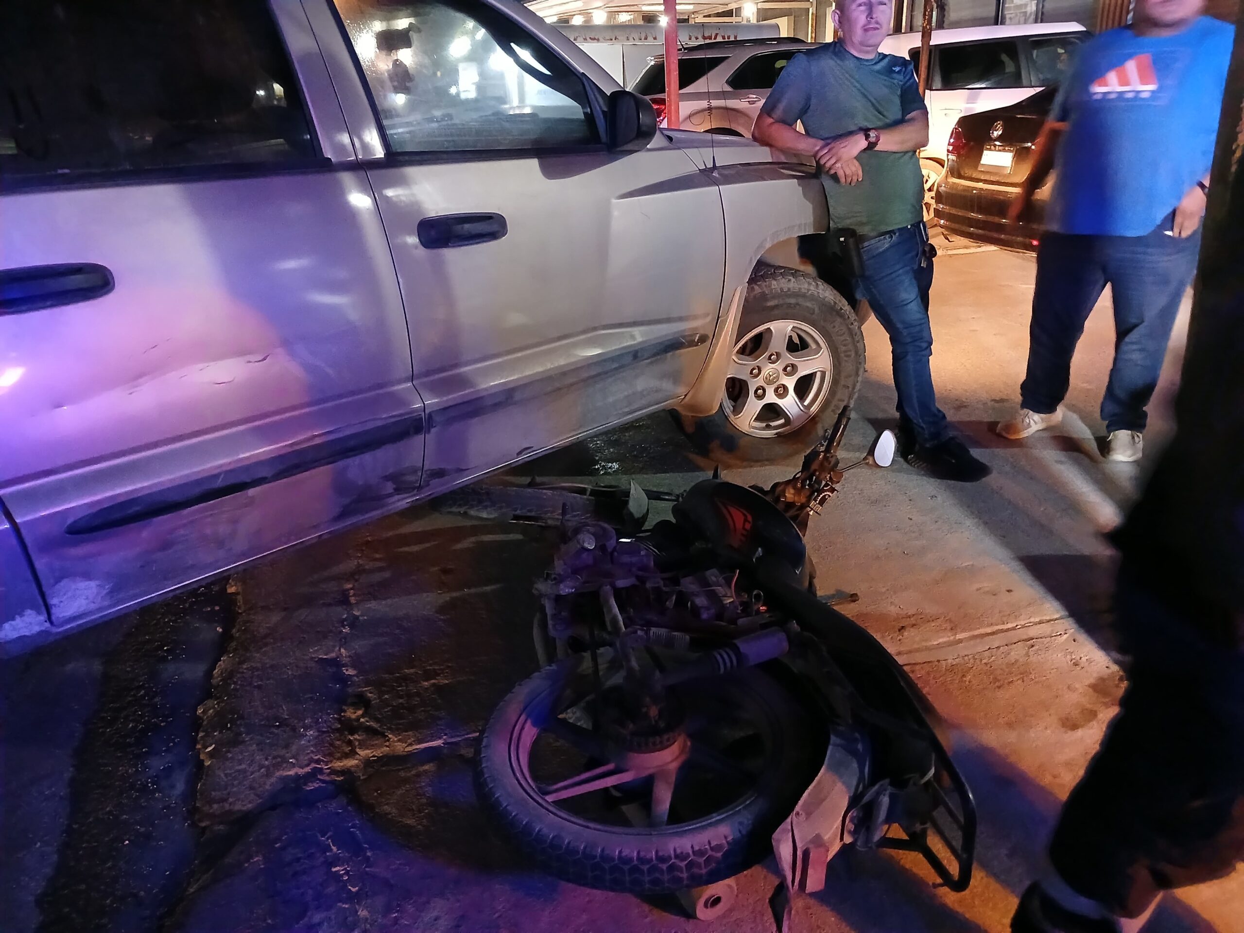 Según los reportes, ambos conductores circulaban con dirección al poniente cuando, de manera repentina, la camioneta Dodge Dakota se abrió. El motociclista asumió que el conductor se incorporaría al estacionamiento ubicado del lado norte; sin embargo, en lugar de hacerlo, el vehículo ingresó al estacionamiento del lado sur, cerrándole el paso a la motocicleta y provocando la colisión.