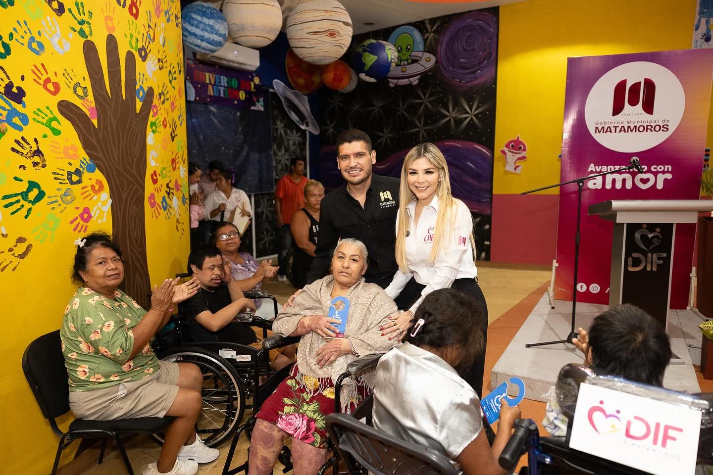 H. Matamoros, Tamaulipas.- El presidente municipal, Beto Granados, acompañó a la presidenta del Sistema DIF Matamoros, Ana Ariceaga de Granados, en un emotivo evento realizado en el Centro de Rehabilitación Integral (CRI) del DIF Matamoros, donde se llevó a cabo la entrega de 50 sillas de ruedas y tarjetones de discapacidad a personas que más lo necesitan.