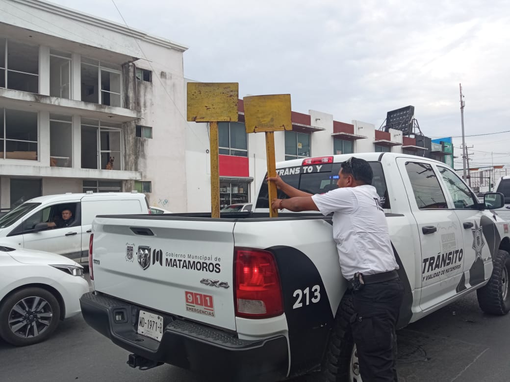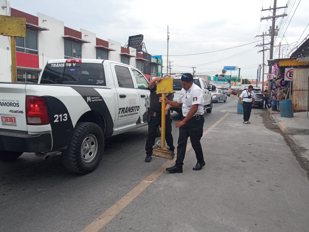 En la calle 8 y Diagonal, se quitaron botes de basura y letreros colocados sobre la vía pública, los cuales impedían que los ciudadanos pudieran estacionarse.