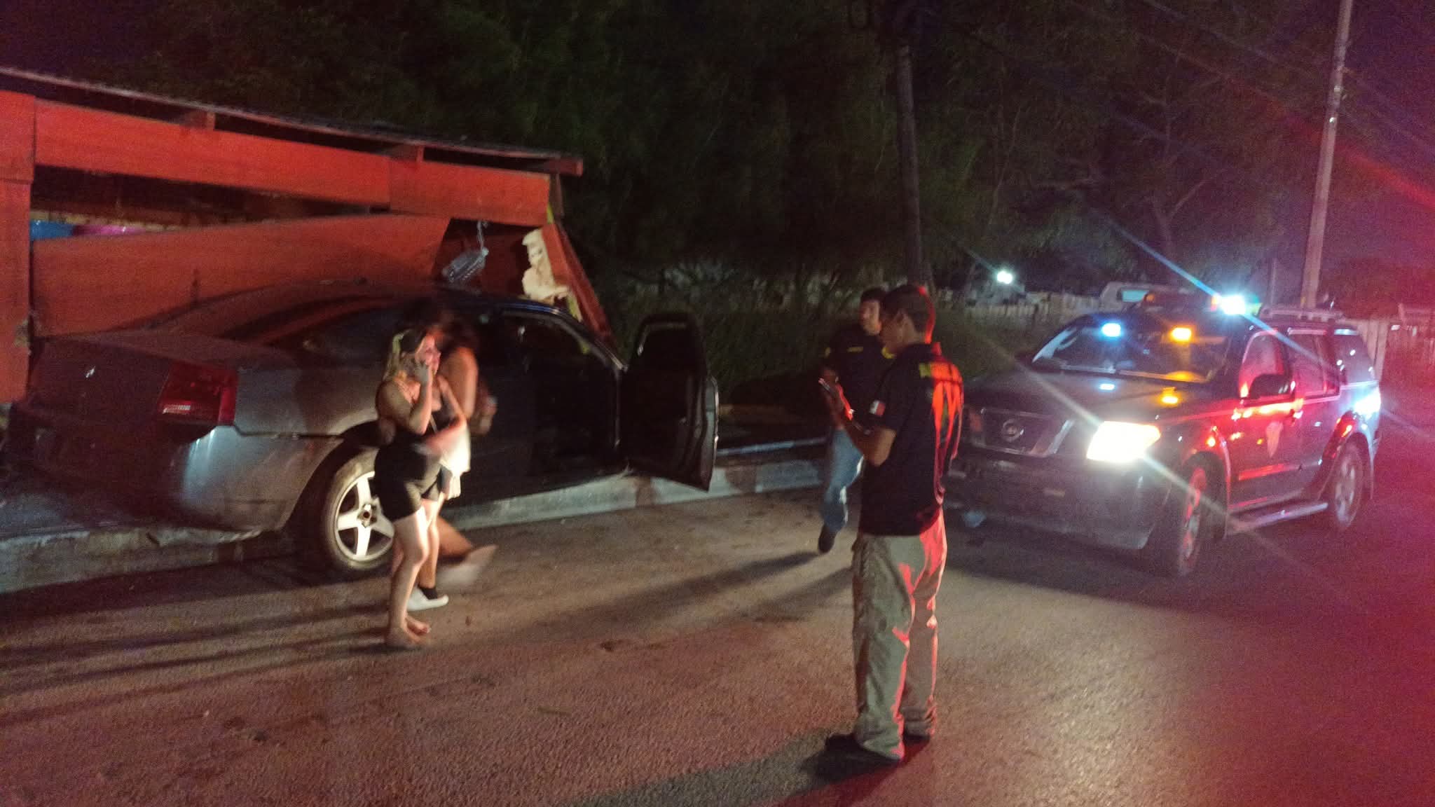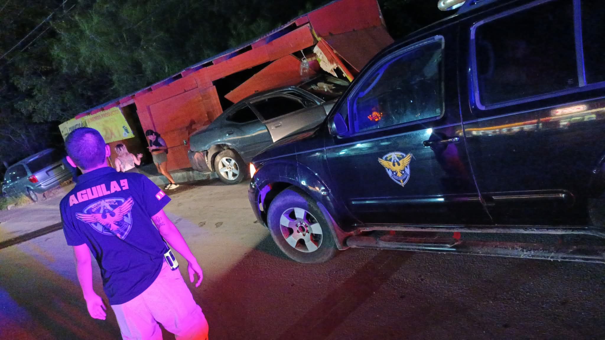 Durante la madrugada de este viernes se registró un aparatoso accidente vial en el Sendero Nacional, a la altura de la colonia López Portillo, donde un vehículo terminó impactándose contra un puesto de productos de limpieza.