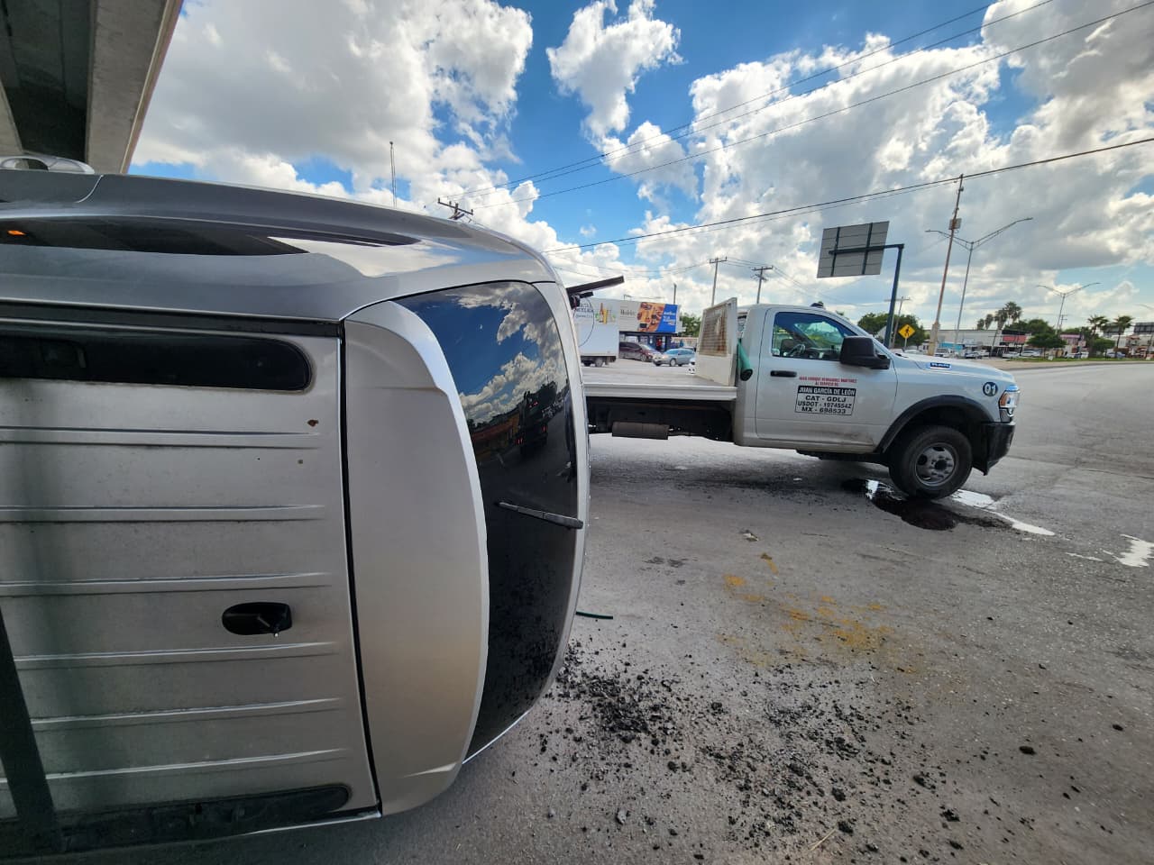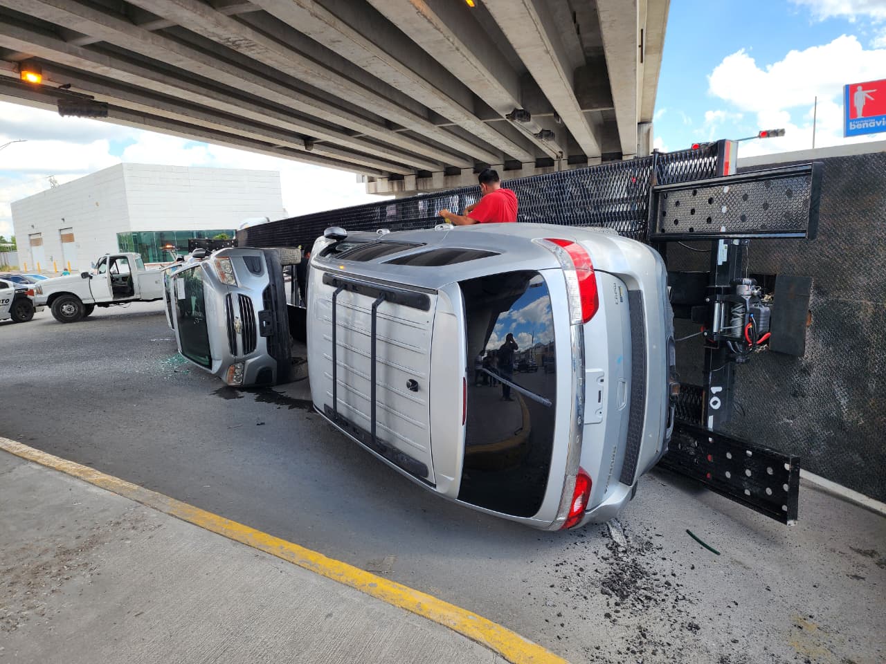 De acuerdo con los primeros reportes, el accidente ocurrió presuntamente por una mala maniobra del operador, aunque este aseguró que otro vehículo se le atravesó, lo que provocó que perdiera el control y terminara volcado.