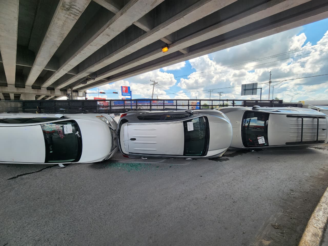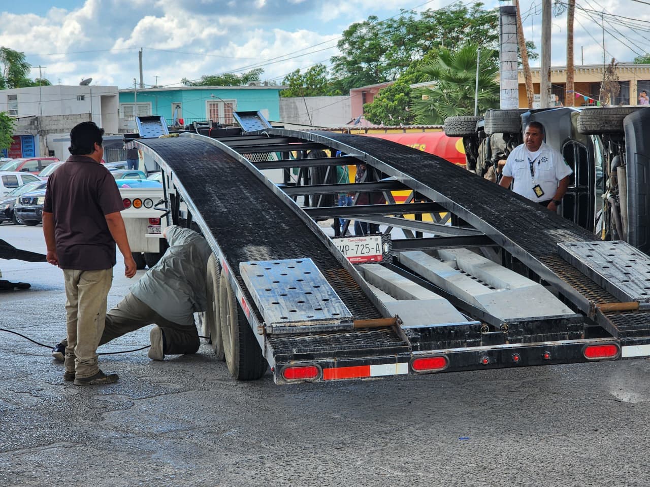 El transporte llevaba tres unidades destinadas a desmantelarse para autopartes, las cuales resultaron con daños considerables tras el siniestro.
